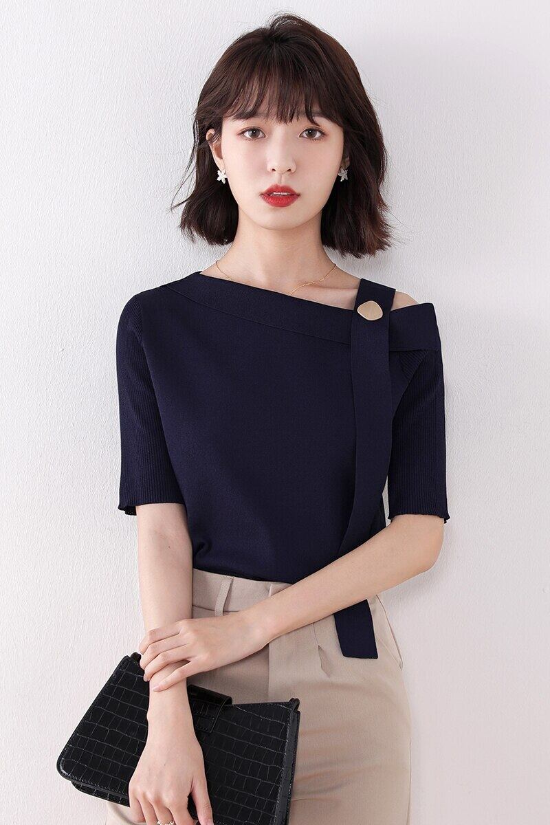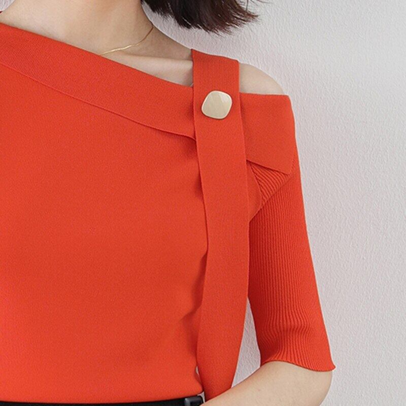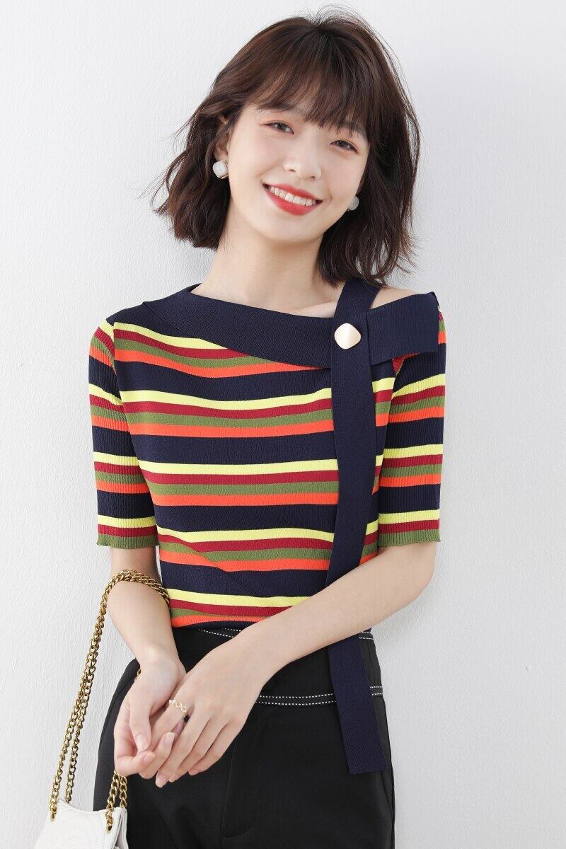 LJSXLS ストライプニットセーター女性 2021 春夏セクシーなオフショルダートップス服プルオーバー スプリング 春物 サマー 夏物 Son97244666406