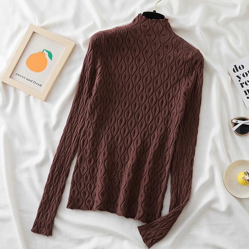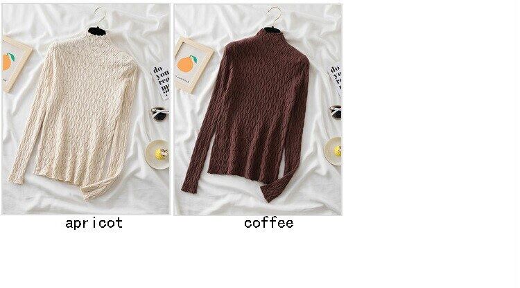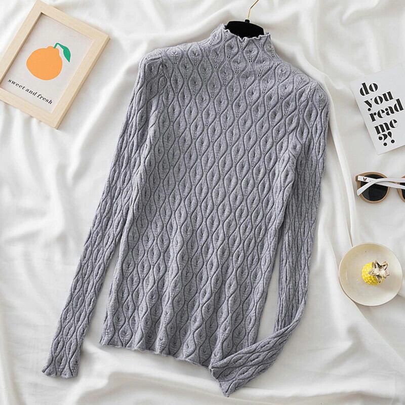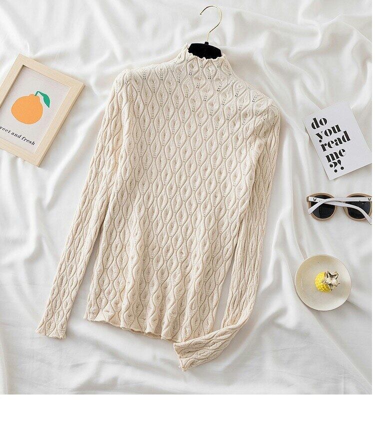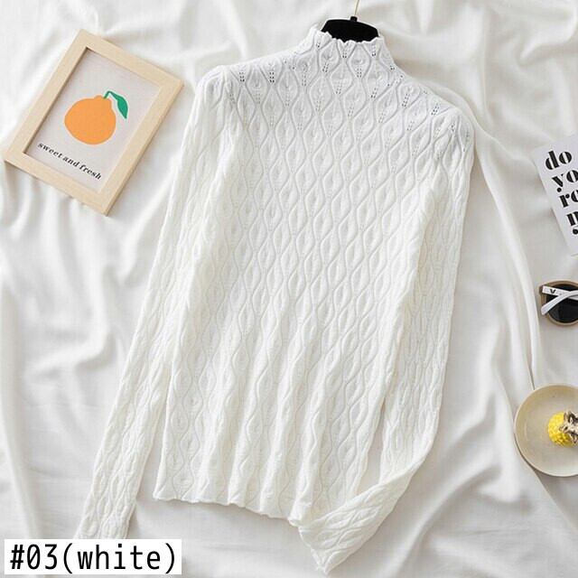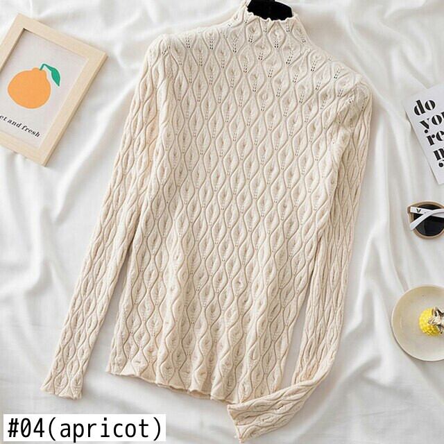 ニット中空アウトプルソリッドプルオーバーセーターハーフコラスリムセーター女性秋冬長袖トップ 2021 ロング オータム 秋物 ウィンター 冬物 ソリッドカラー Son4540857444