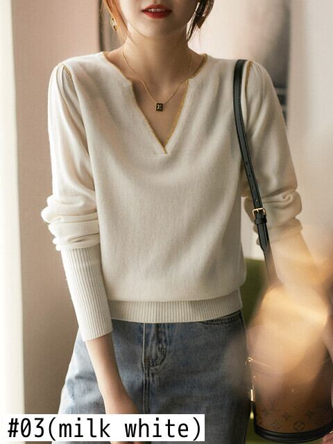プルhiver 2022 vネックプルオーバーセーター女性秋冬長袖ソリッドニットトップス服 ロング オータム 秋物 ウィンター 冬物 ソリッドカラー Son28553152630