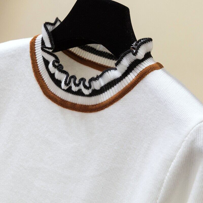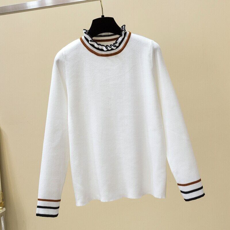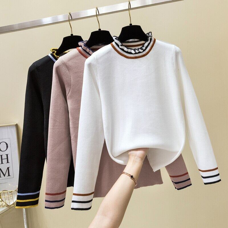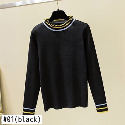 秋ストライプニットセーター女性の冬のハーフタートルネックフリル長袖セータープルオーバージャンパーレディース ロング ラッフル オータム 秋物 ウィンター 冬物 Son44374124914