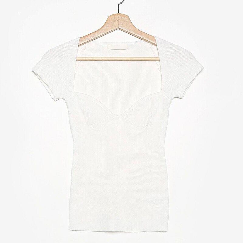 LJSXLS 2021 女性の夏のトップスの基本的な半袖セクシーな女性スリムニットセーター薄いプルオーバー黒、白 ショート ホワイト ブラック ハーフスリーブ サマー 夏物 Son41912571377