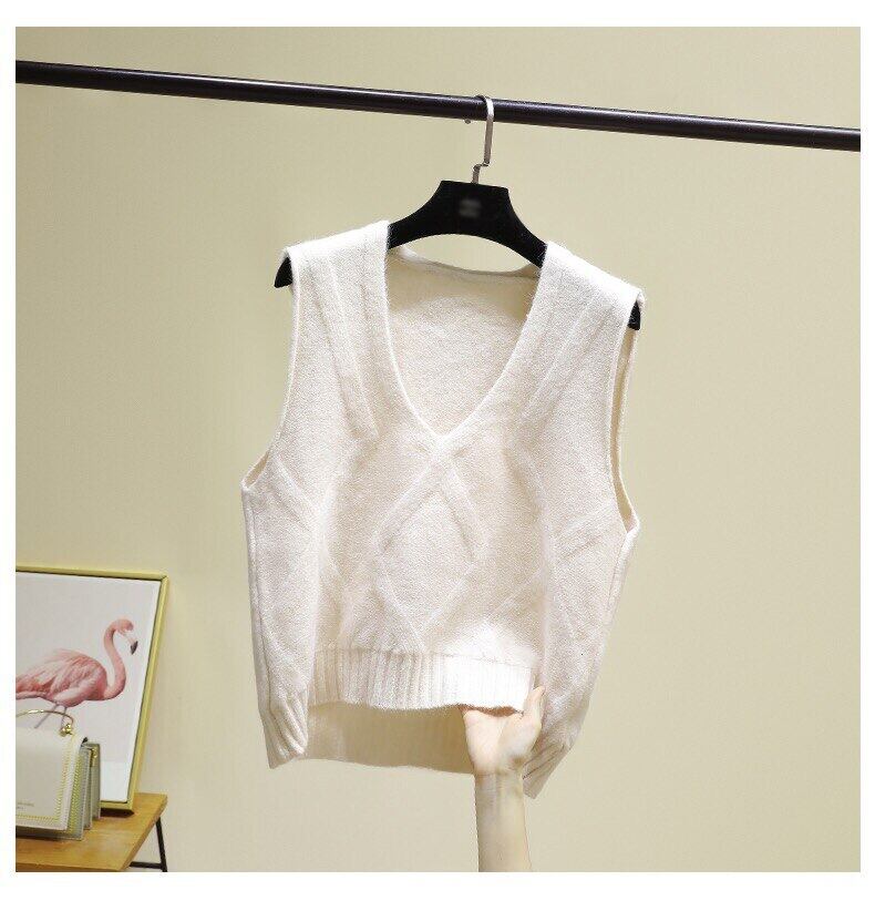 LJSXLS 2021 スタイルピンク V ネックニットベスト女性秋ノースリーブルーズプルオーバーセータートップス オータム 秋物 Vネック Son60896532186