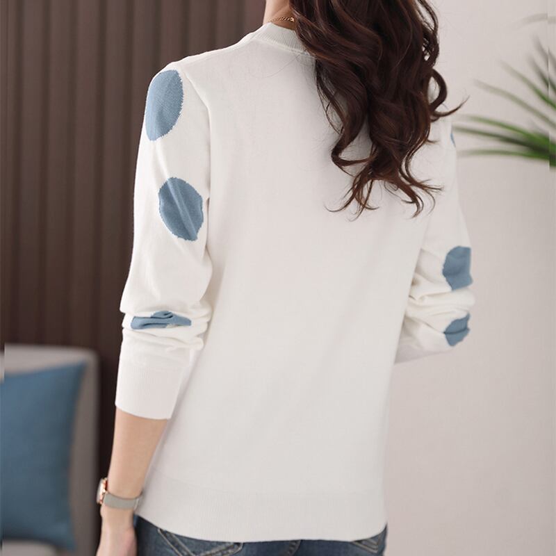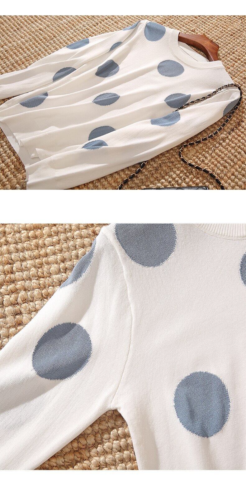 LJSXLS ドット O ネックニットセーター 2021 秋冬かわいい服女性プルオーバーセーター長袖トップス ロング 大人ガーリー スウィート キュート カジュアル オータム 秋物 ウィンター 冬物 Oネック Son27290117050