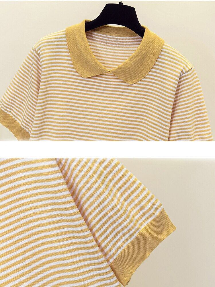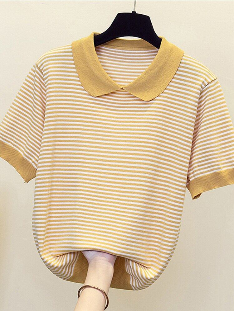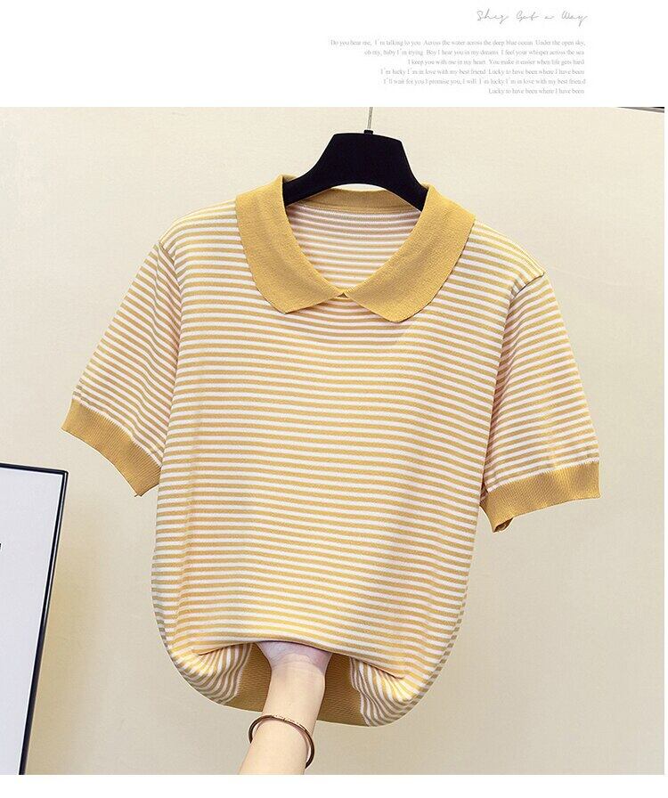 プル 2022 夏ストライプ半袖アイスシルクセーター女性プルオーバー服薄いニットトップス ショート ハーフスリーブ サマー 夏物 Son63455185688