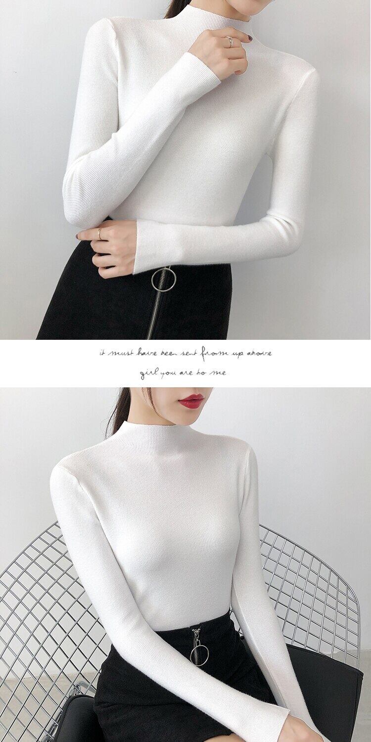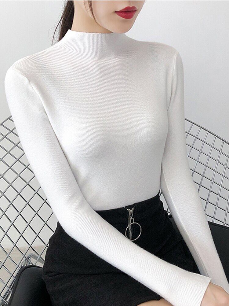 プルオーバー女性ニットセーター長袖トップハーフタートルネックセーター 2022 秋冬白服 ロング ホワイト オータム 秋物 ウィンター 冬物 Son93650081581