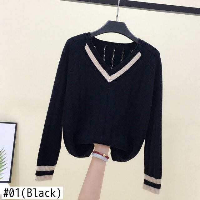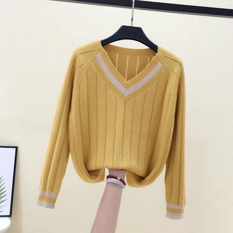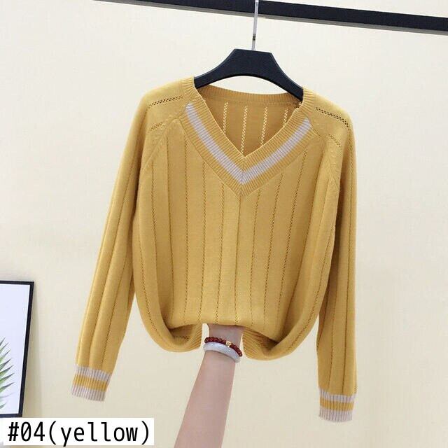 LJSXLS V ネックセーター 2021 秋のルーズニットセーター女性プルオーバー長袖トップス ロング オータム 秋物 Vネック Son98647425659