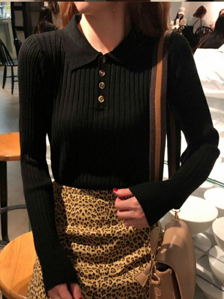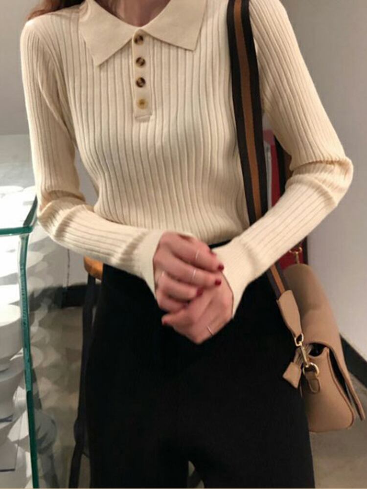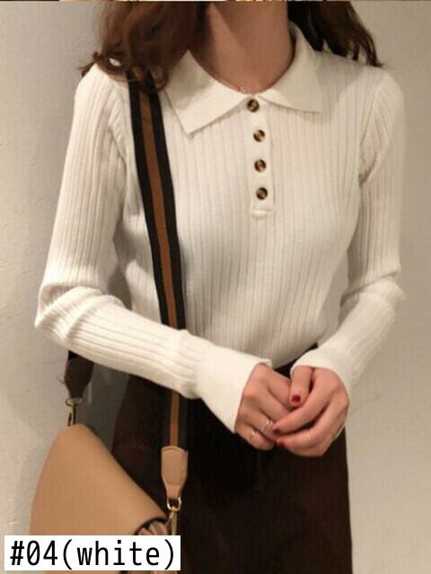 冬服女性ターンダウン襟セーターレディースボタン長袖トップ 2022 秋スリム弾性プルオーバー女性セーター ロング エラスティック 伸縮 オータム 秋物 ウィンター 冬物 Son70473541677
