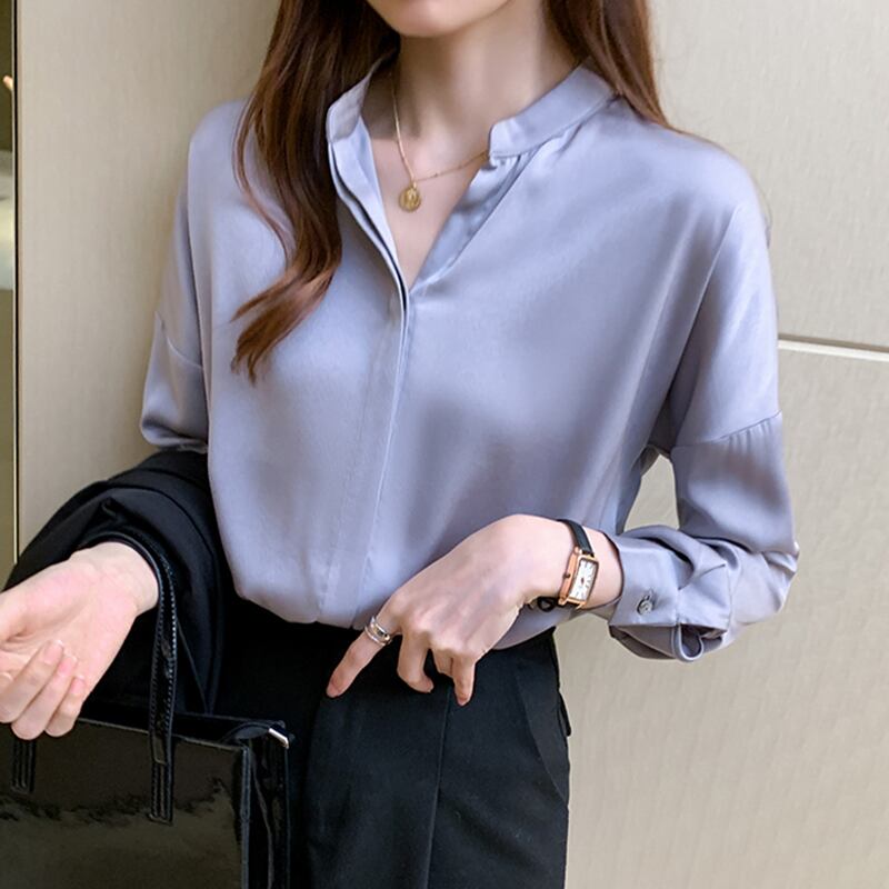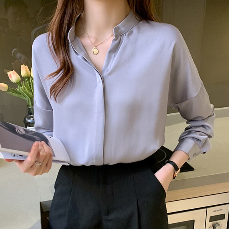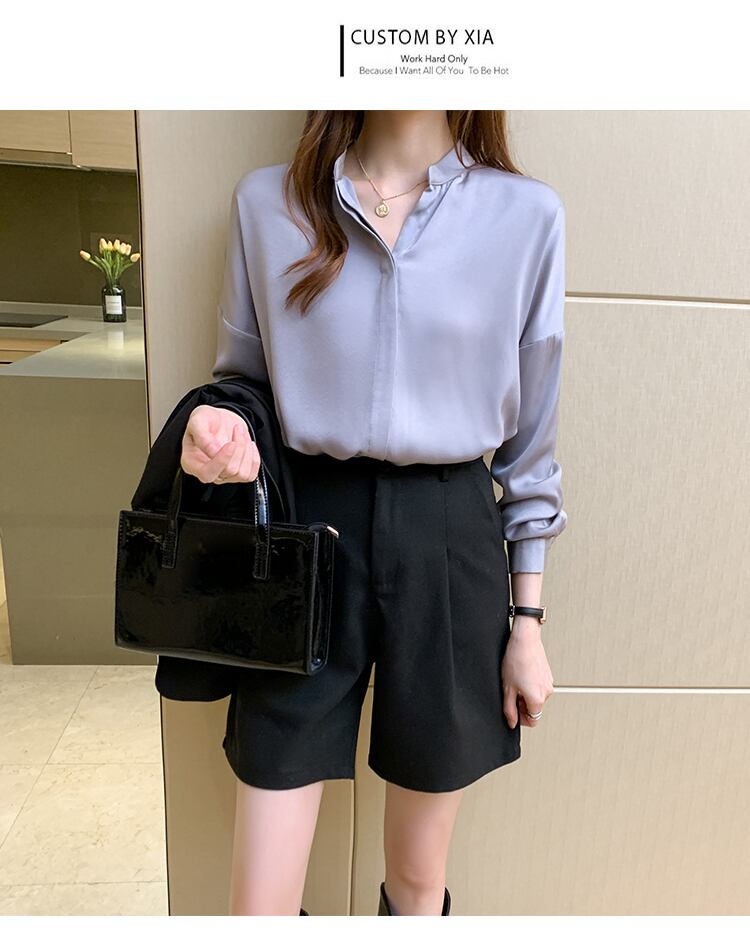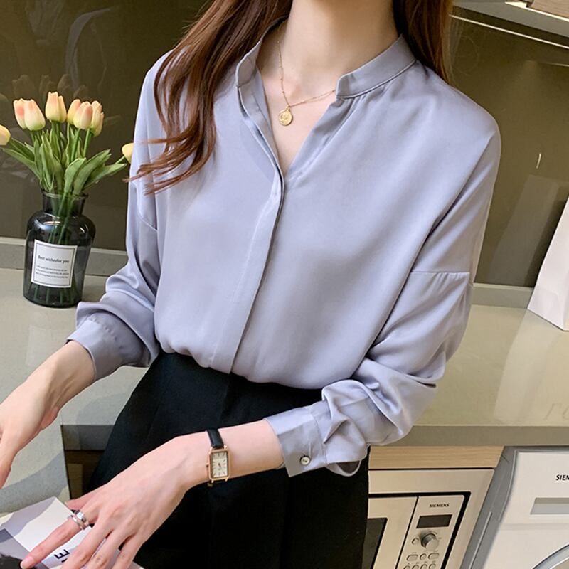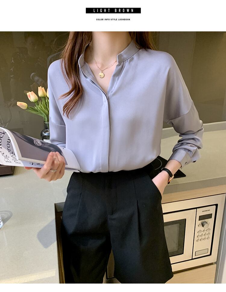 LJSXLS 長袖ルーズシルクブラウス女性シフォンオフィスシャツデ 2021 春 ロング スプリング 春物 会社 学校 通勤や通学にも Son49247984060