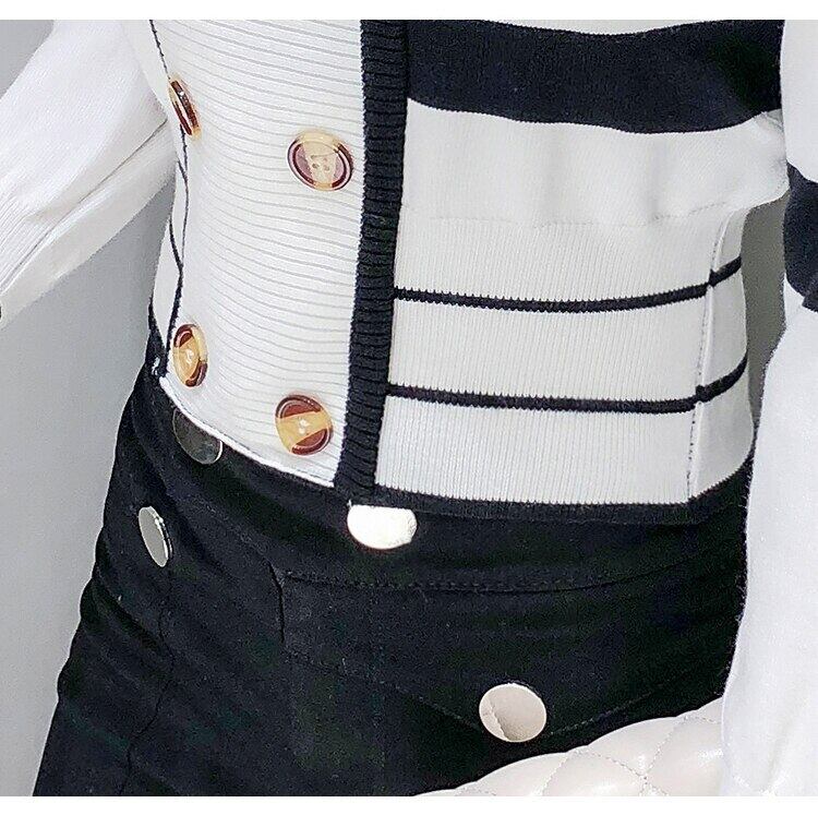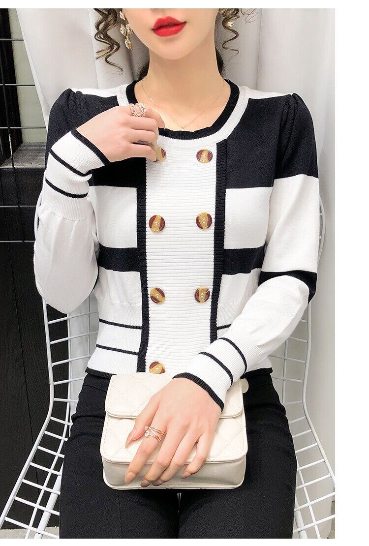 セーター 長袖 ストライプ プルオーバー セーター レディース ボタン スリム Oネック ニット レディース 秋冬 ロング オータム 秋物 ウィンター 冬物 Son92378679095