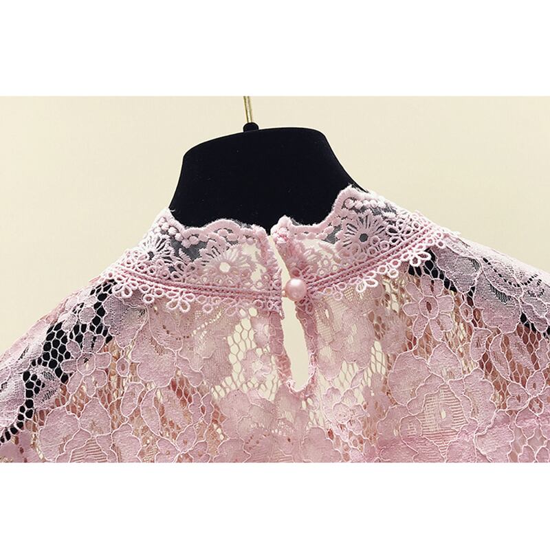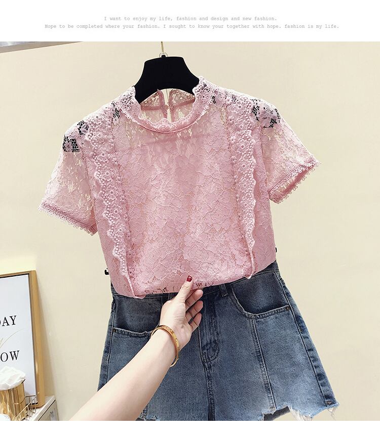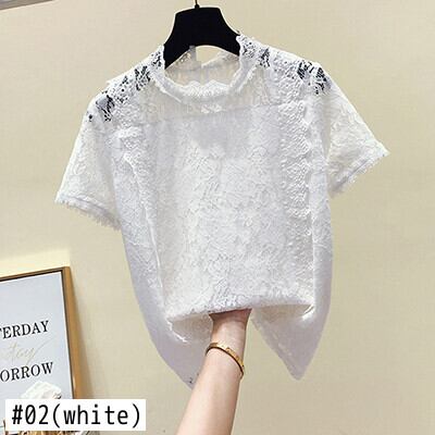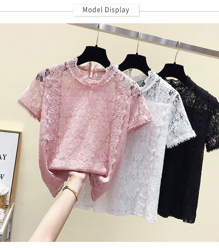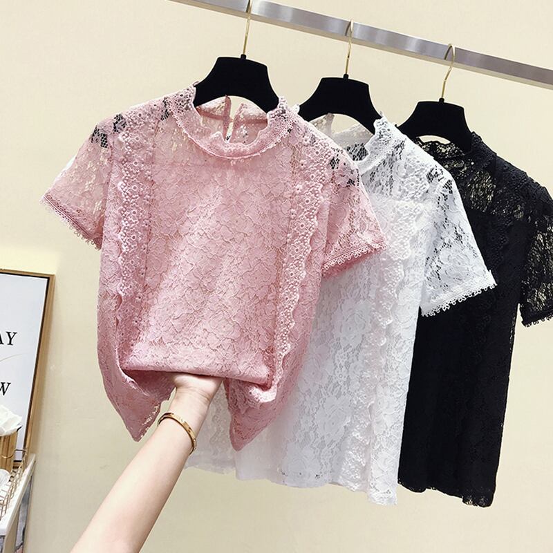 Blusa 夏中空アウトハーフタートルネックレースブラウス女性白黒ピンクシャツスタイルのセクシーなブラウス ホワイト ブラック サマー 夏物 Son12083493998