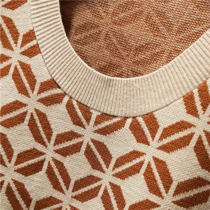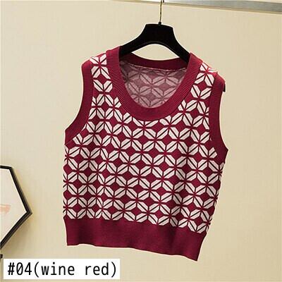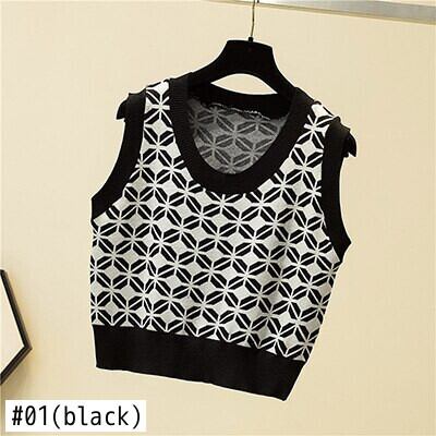 LJSXLS O ネックニットベスト女性プルオーバーセーター秋冬ルースチェック柄クロップトップ 2020 ノースリーブセーターベスト オータム 秋物 ウィンター 冬物 Oネック Son74340133315