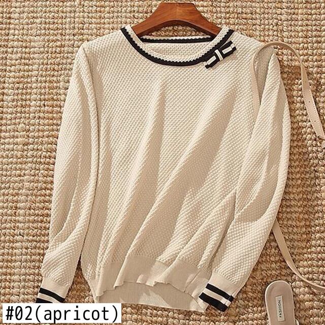 LJSXLS 弓パッチワーク長袖セーター女性秋冬ニットプルオーバー O ネックトップス 2021 ロング リボン オータム 秋物 ウィンター 冬物 Oネック Son2880119429