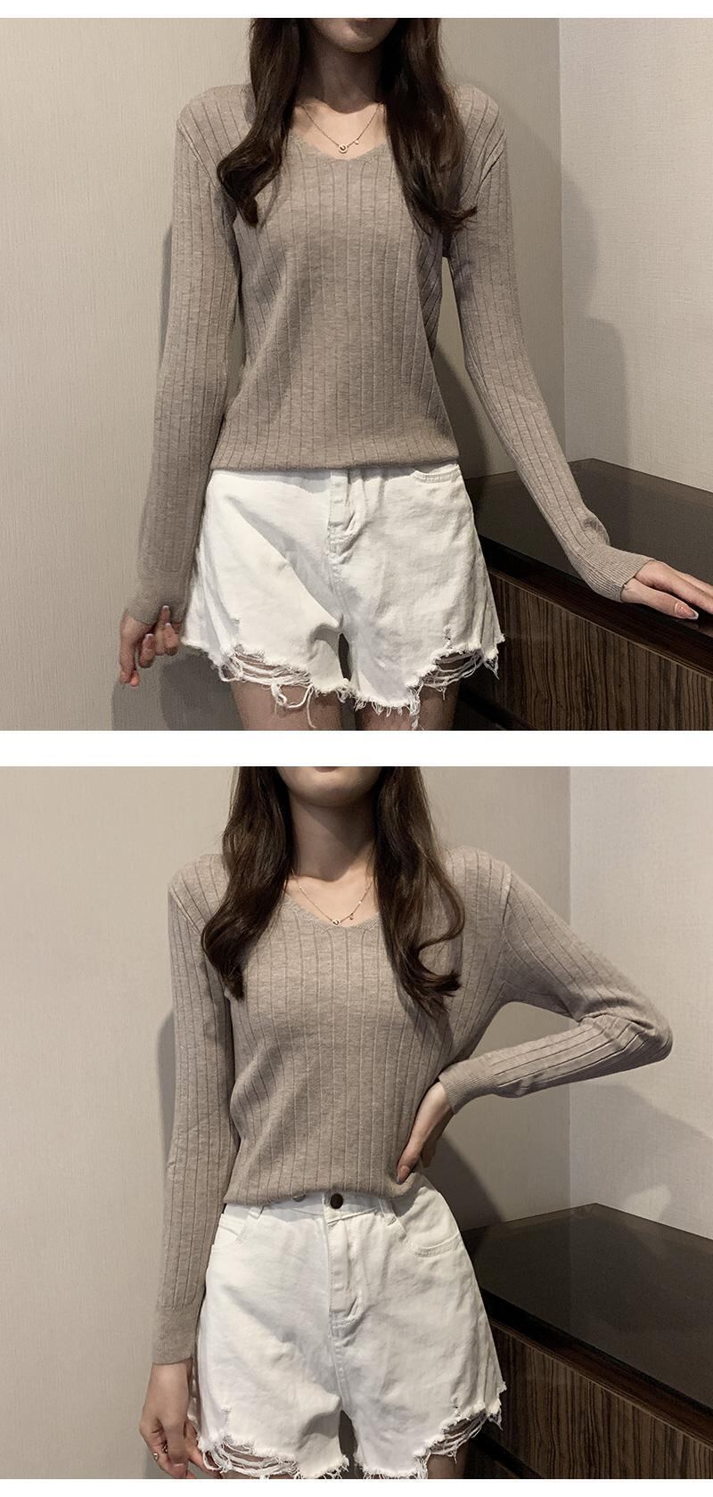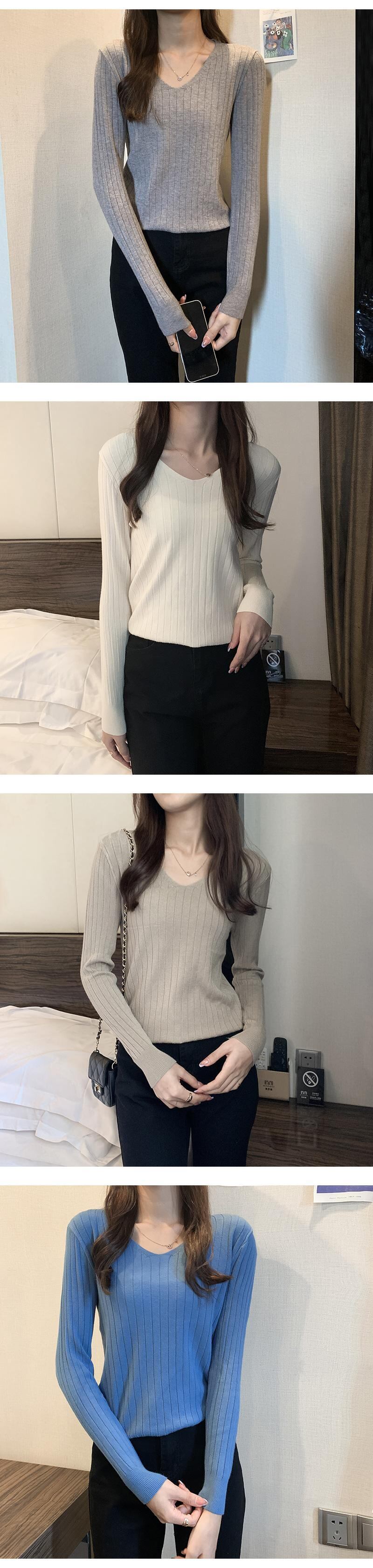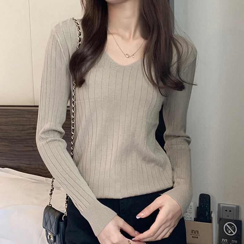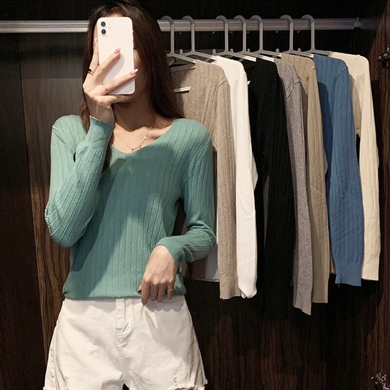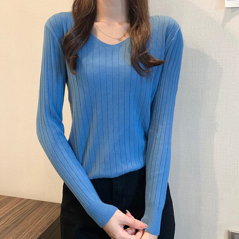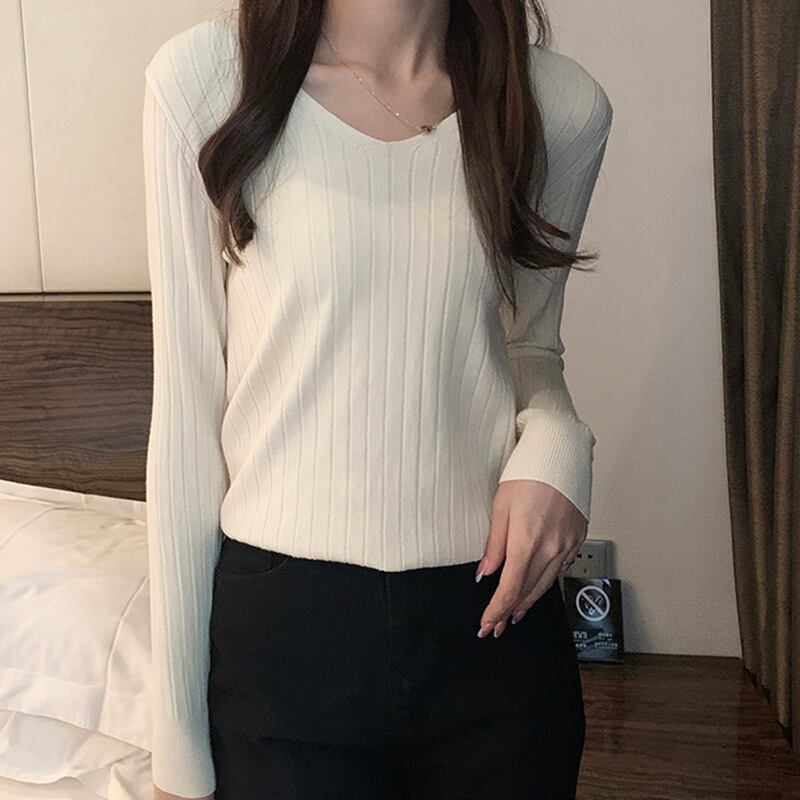 LJSXLS 2021 秋冬オールマッチセーターニットプルオーバー女性 V ネックスリムセーターベーシック無地長袖トップジャンパー ロング オータム 秋物 ウィンター 冬物 Vネック ソリッドカラー Son44335128302