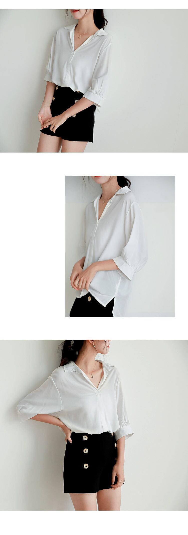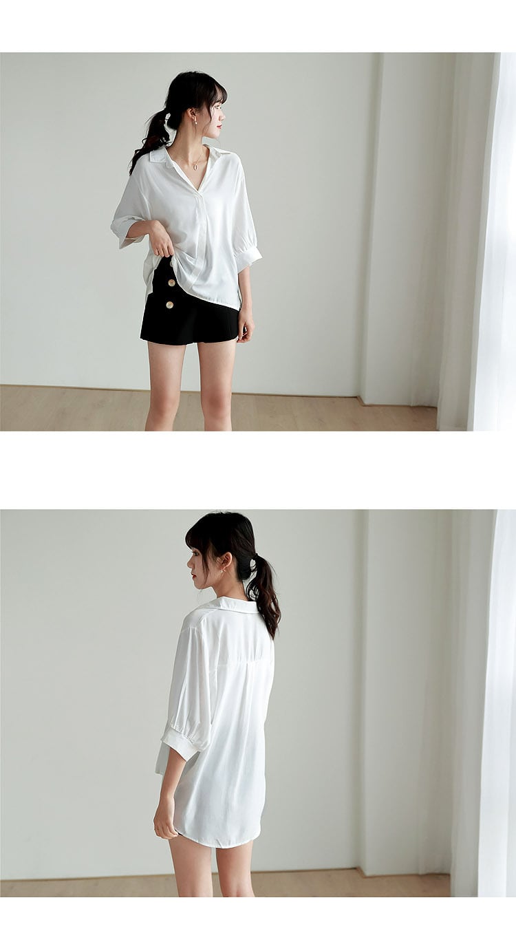 LJSXLS 白シャツ レディース サマーランタン 半袖 Vネック ブラウス Lady De Moda 2021 ルーズトップス ショート ホワイト ハーフスリーブ 夏物 Son52250780304