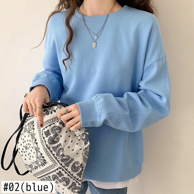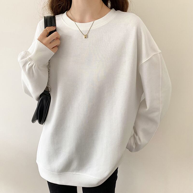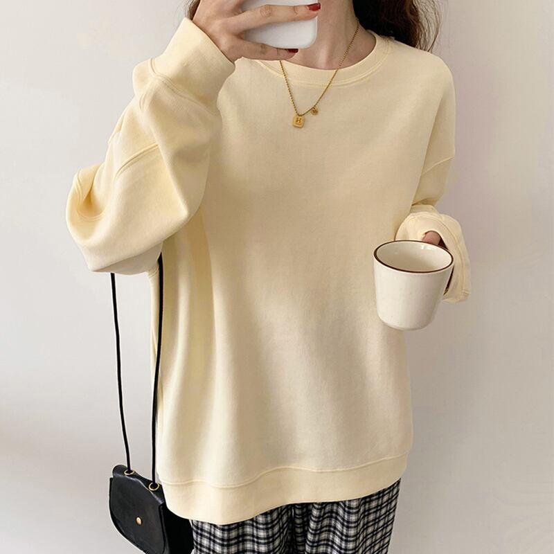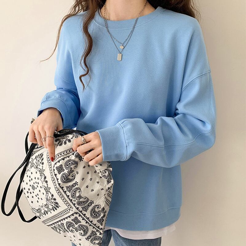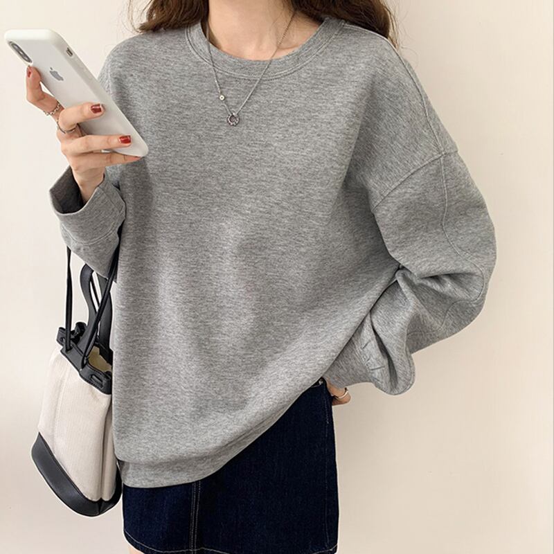 LJSXLS パープルスウェットシャツの女性の春と秋 O ネックの基本的な特大長袖ルーズトップスプルオーバー学生 ロング スプリング 春物 オータム 秋物 Oネック Son12653191357