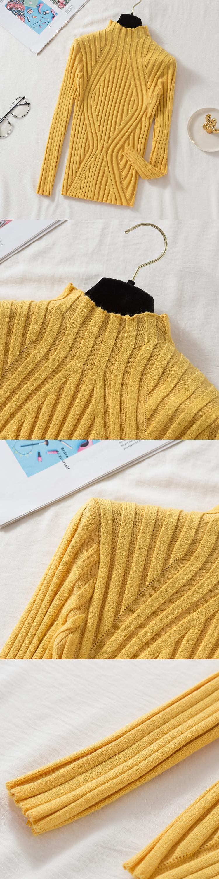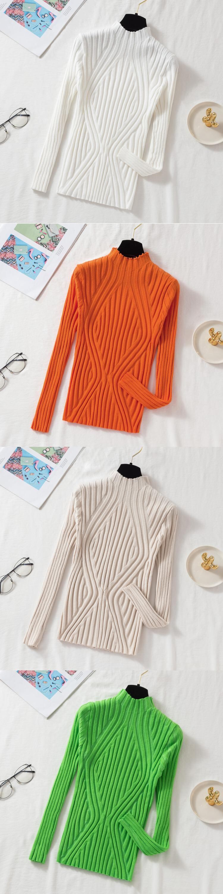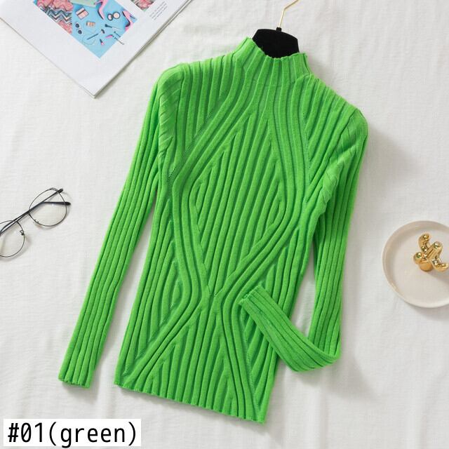 2022 プルオーバーセーター女性アプリコット秋冬ハーフカラーセータースリムニットソフトジャンパートップ オータム 秋物 ウィンター 冬物 Son57092922473
