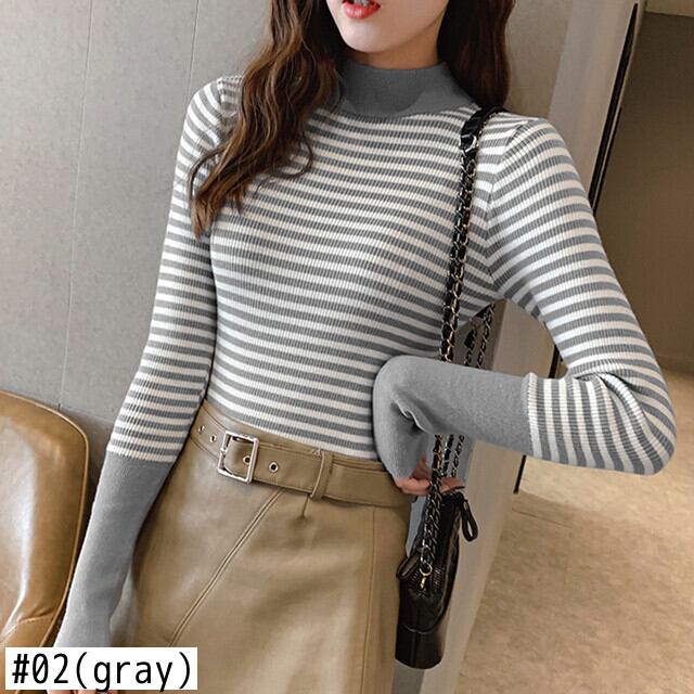 LJSXLS 2021 秋冬ストライプニットセーターの女性プル長袖プルオーバーセータースリムハーフタートルネックトップ ロング オータム 秋物 ウィンター 冬物 Son21609927716