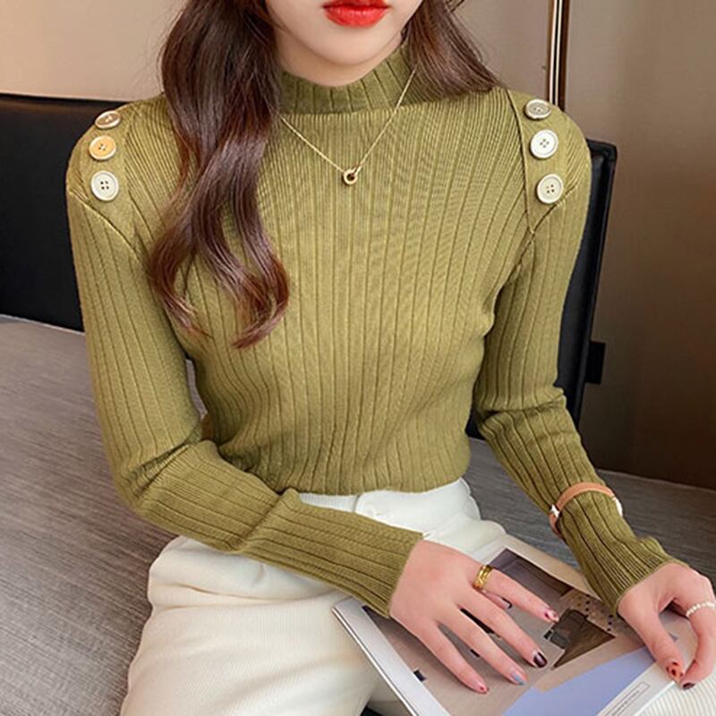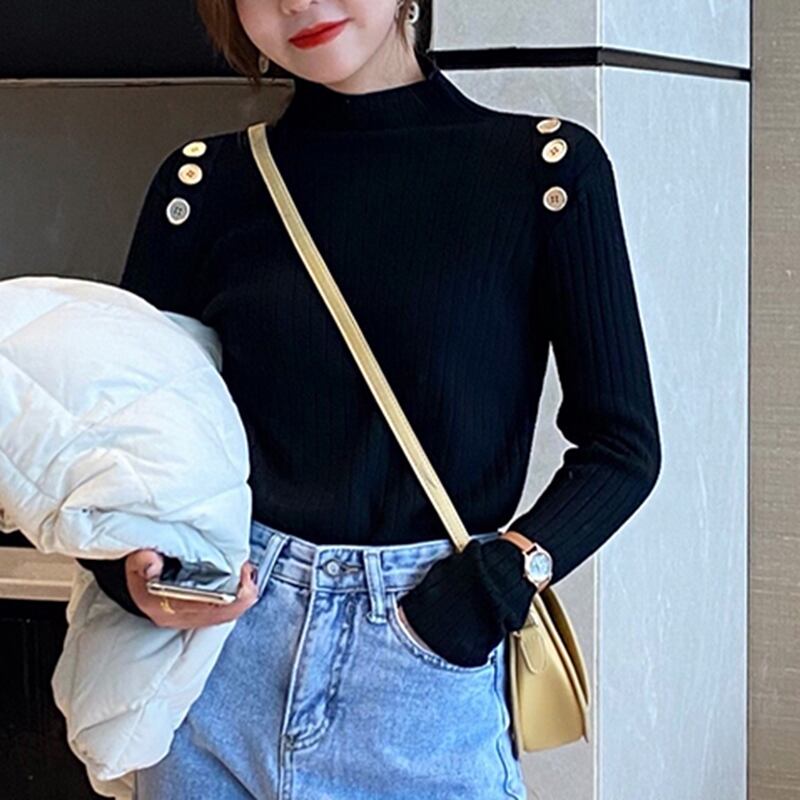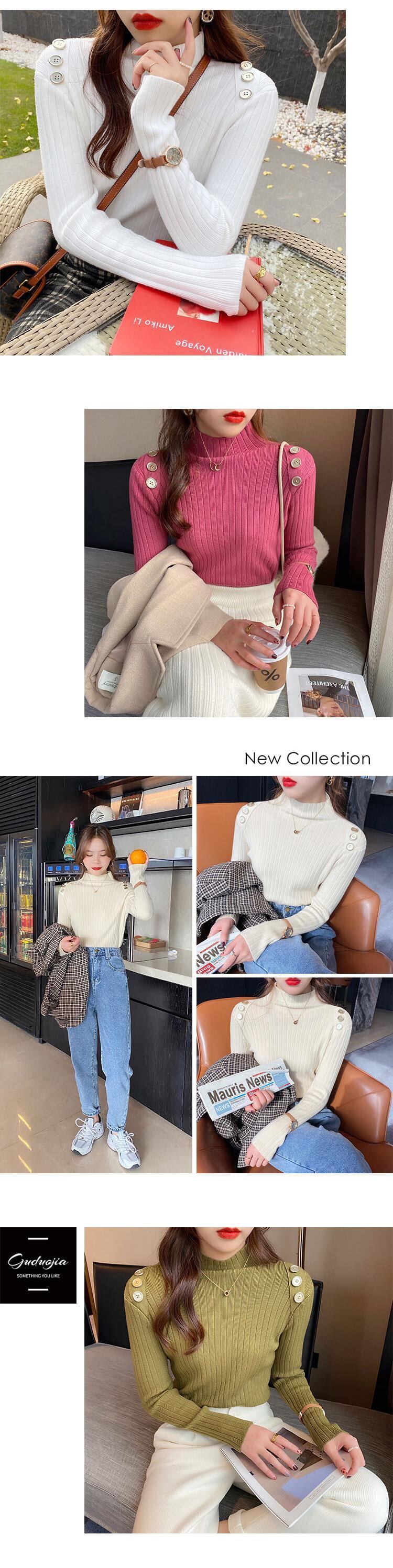 LJSXLS スタイル秋冬厚いハーフカラープルオーバー長袖トップス女性スリムセーター暖かいジャンパーニット 2021 ロング オータム 秋物 ウィンター 冬物 Son93131678674