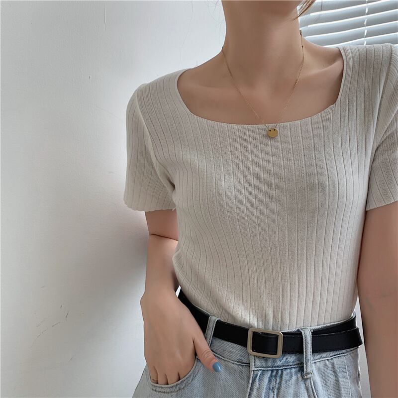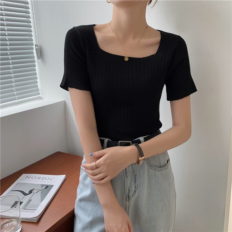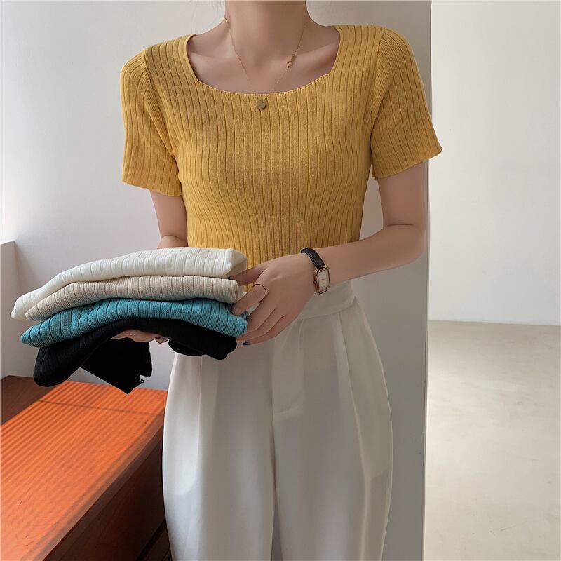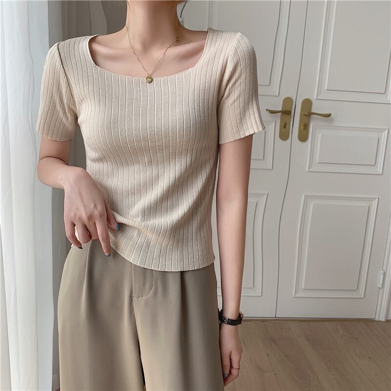LJSXLS 2021 レディース ニット セーター薄い半袖女性の基本的な白いセーター夏プルオーバー ショート ホワイト ハーフスリーブ サマー 夏物 Son62399015840