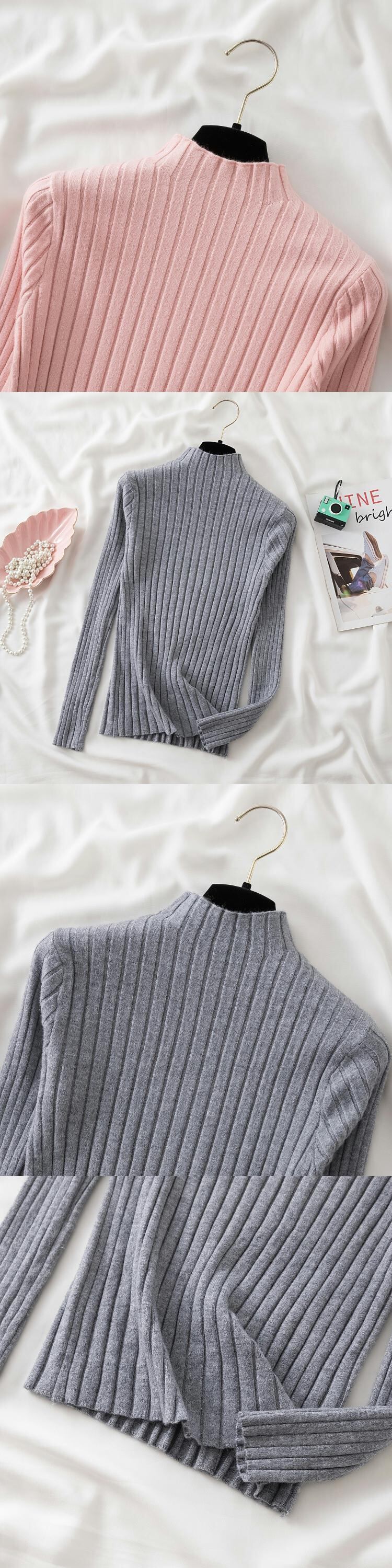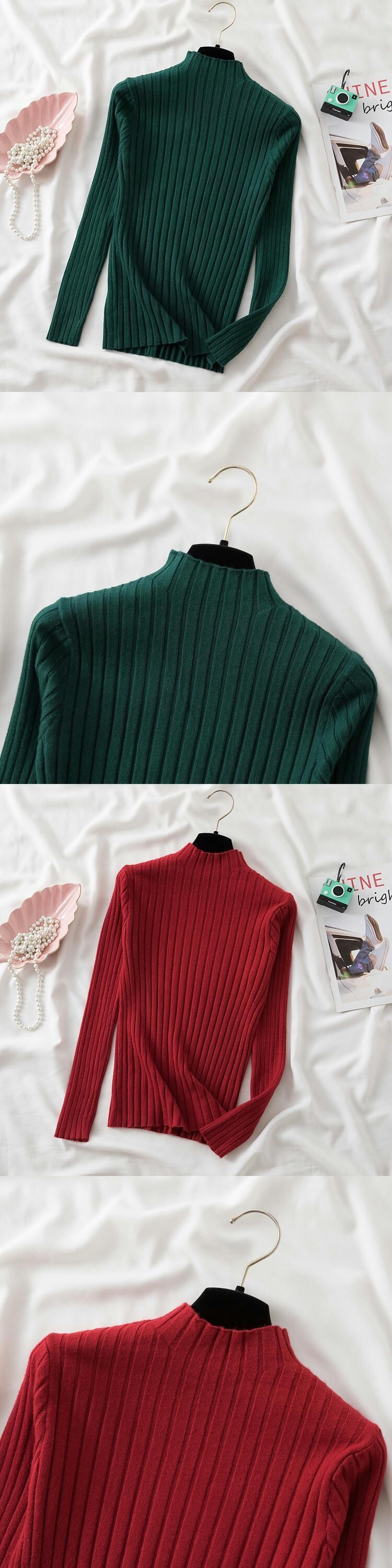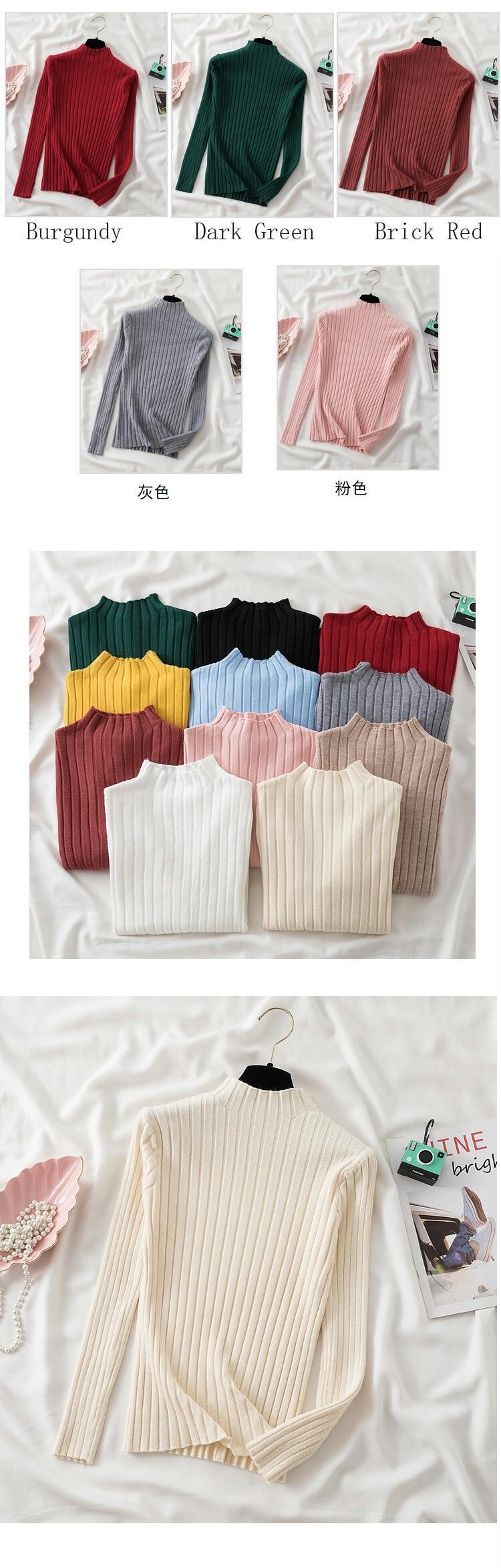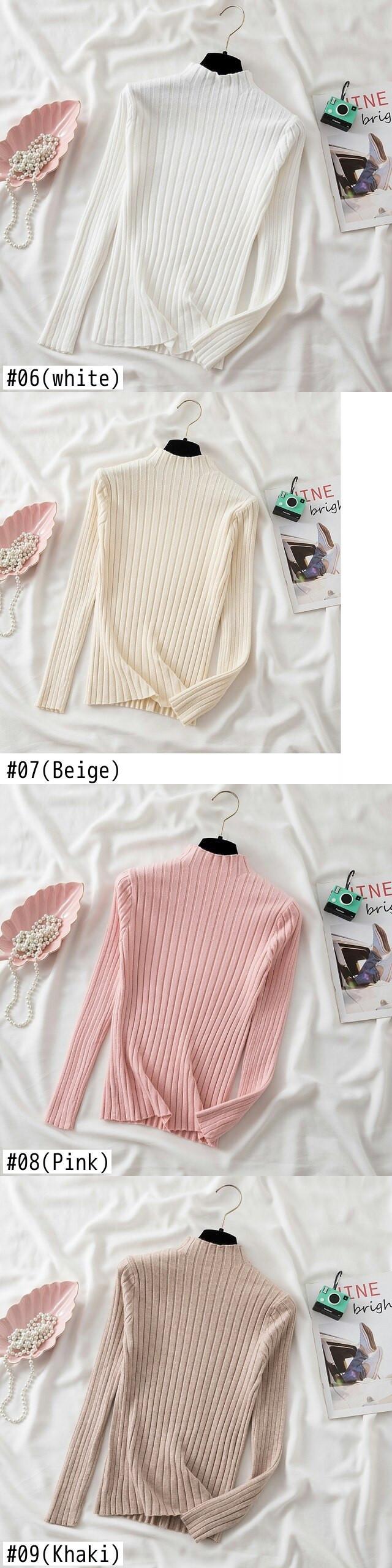 2022 冬長袖厚い白ニットプルオーバー女性ハーフカラースリムセーター暖かい服プル ロング ホワイト ウィンター 冬物 Son39663117731