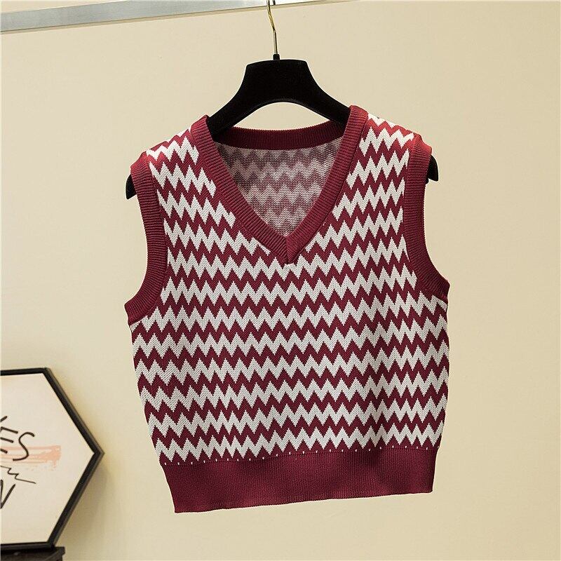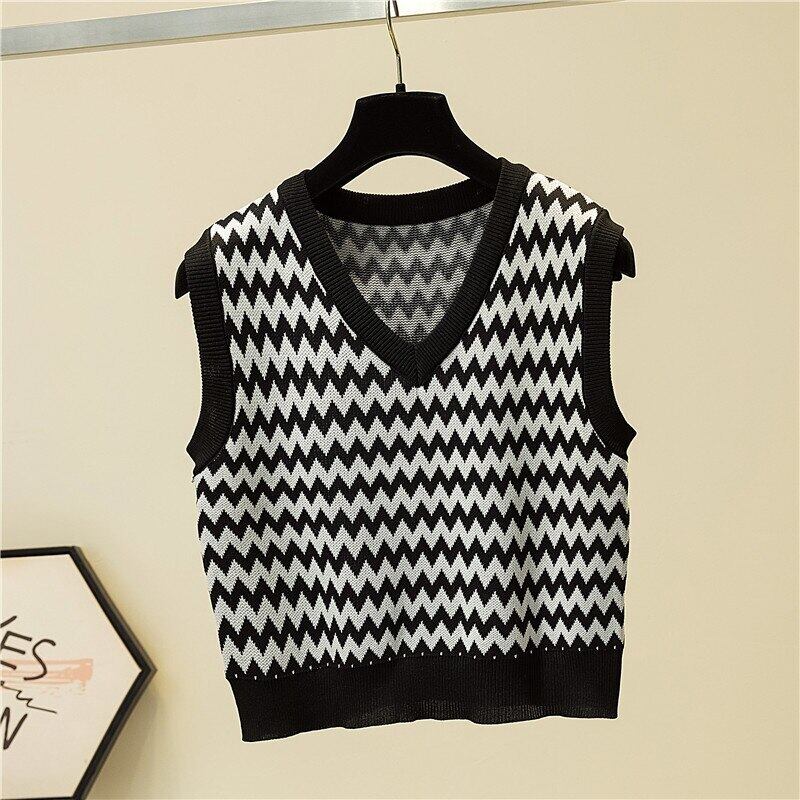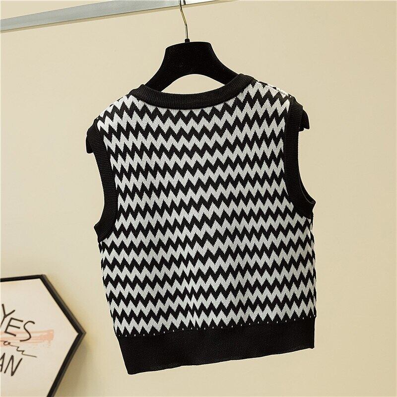 LJSXLS ノースリーブ V ネックニットベストセーター女性 2022 秋冬ルースストライプタンクトッププルオーバー オータム 秋物 ウィンター 冬物 Vネック Son73318089538
