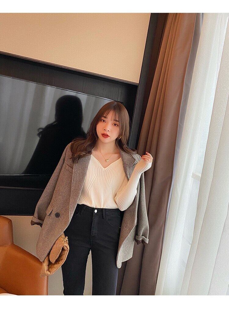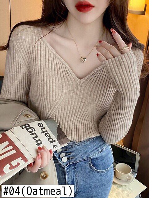 2022 秋冬スリム V ネックプルオーバーセーター女性弾性服ニットセーター長袖トップセーター ロング エラスティック 伸縮 オータム 秋物 ウィンター 冬物 Vネック Son94428567052