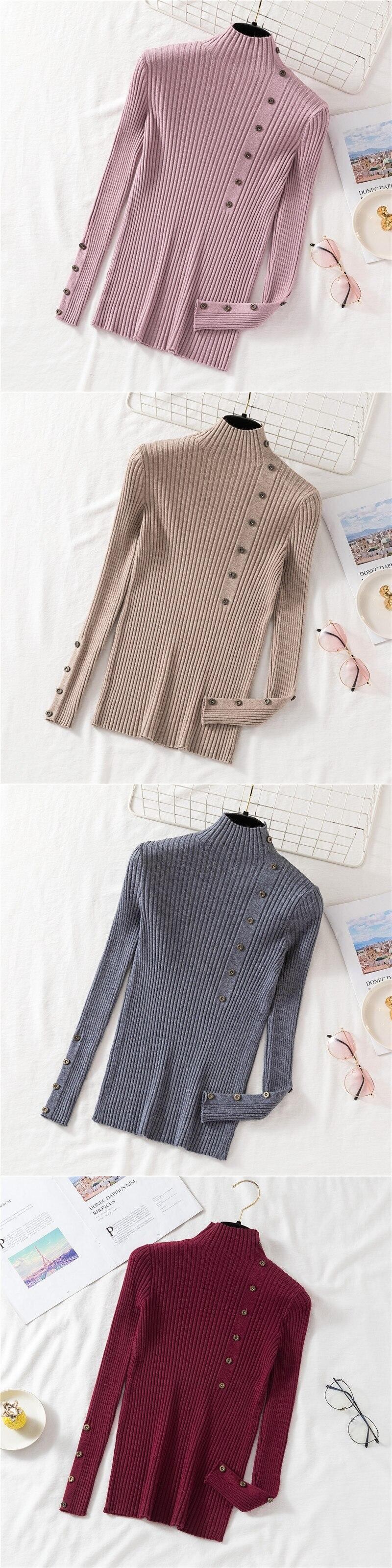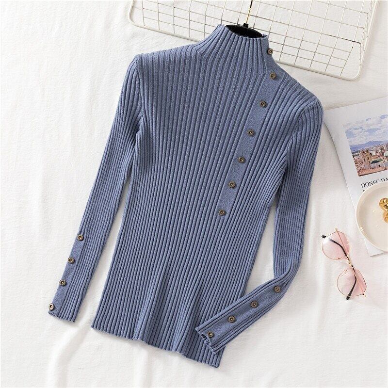 LJSXLS 弾性ニットセーターボタンプルオーバープル秋冬女性セータージャンパープルオーバー長袖 ロング エラスティック 伸縮 オータム 秋物 ウィンター 冬物 Son83939033811