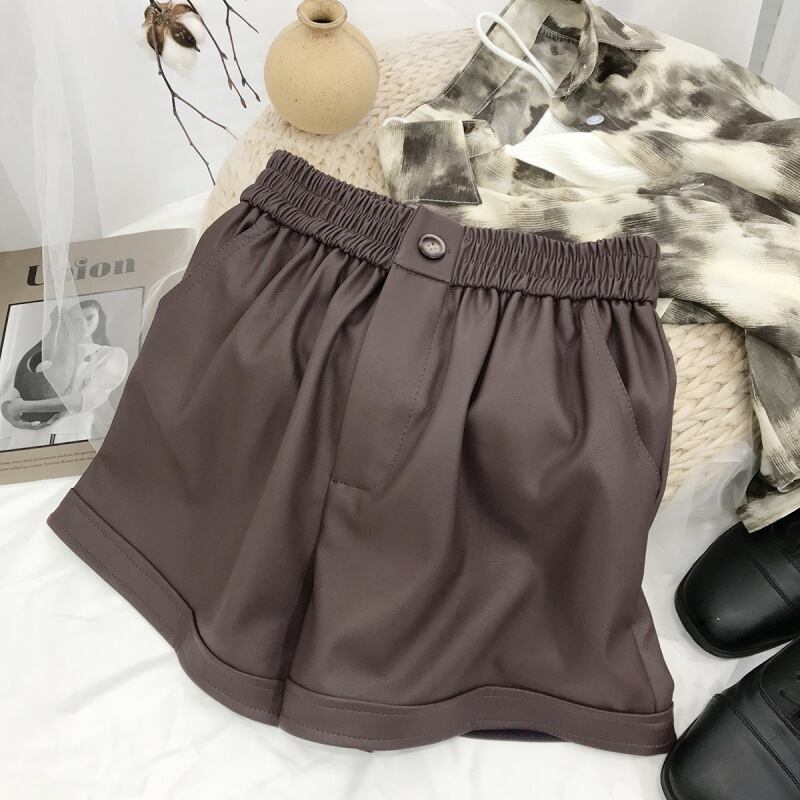 アプリコットブラックコーヒーウエスト PU レザーショーツ女性秋冬ポケットショーツ Pantalones Cortos De Moda オータム 秋物 ウィンター 冬物 ブルマー Son78302383915