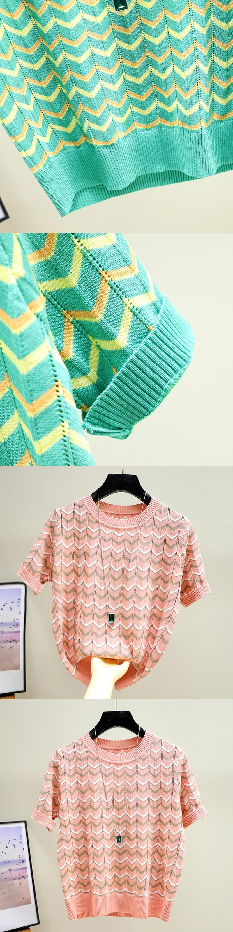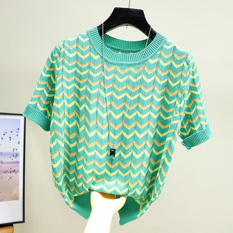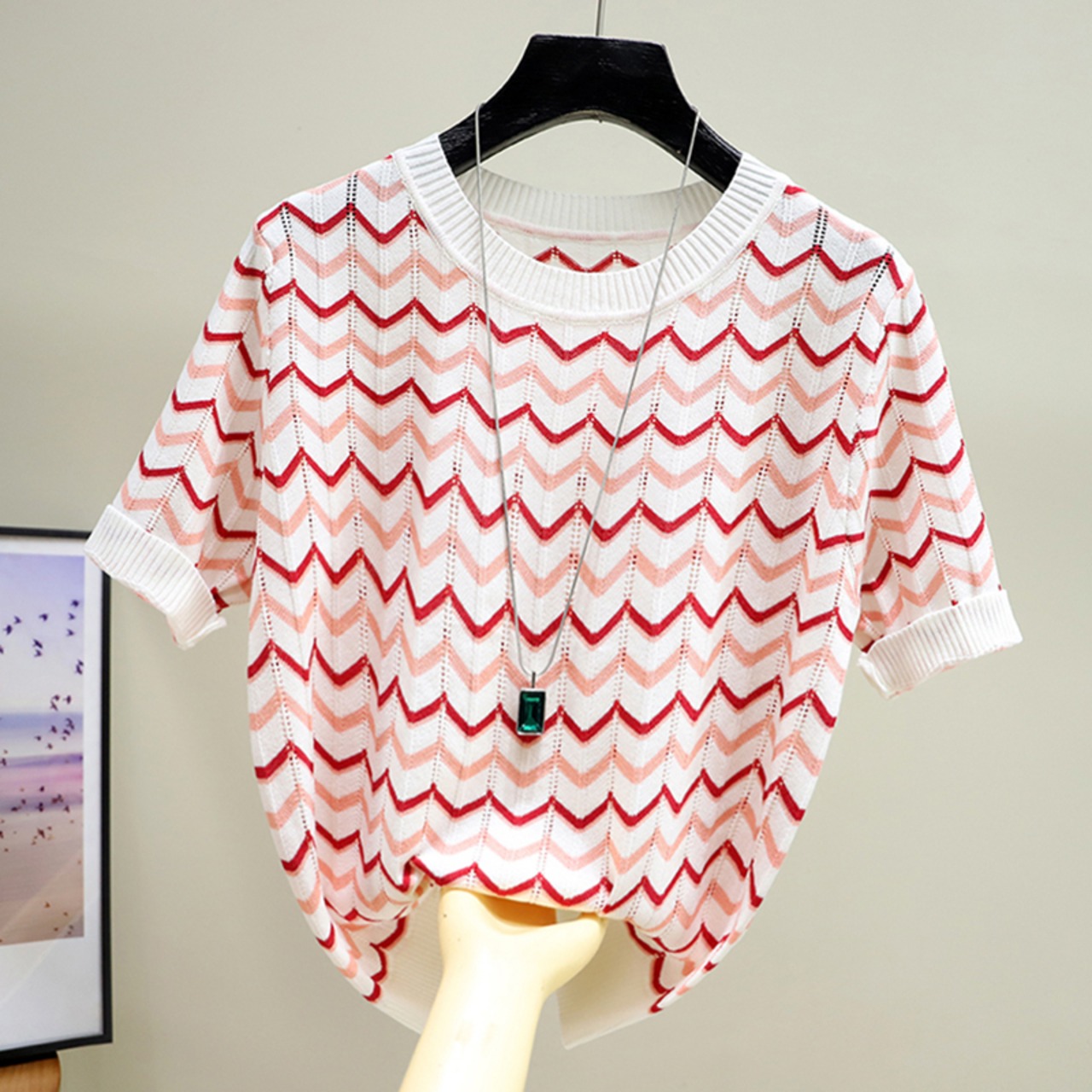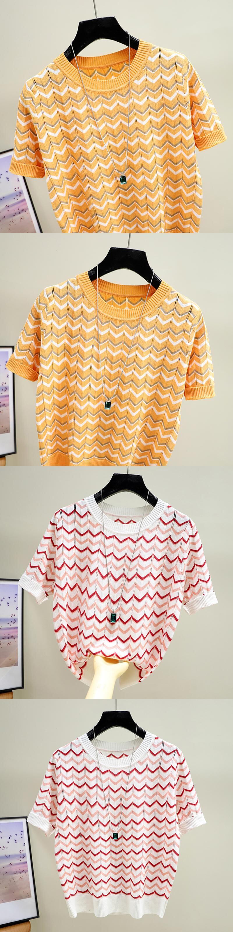 Poleras ストライプ Tシャツ女性半袖 Tシャツ夏ニット女性トップス Tシャツ ショート ハーフスリーブ サマー 夏物 Son93415359681