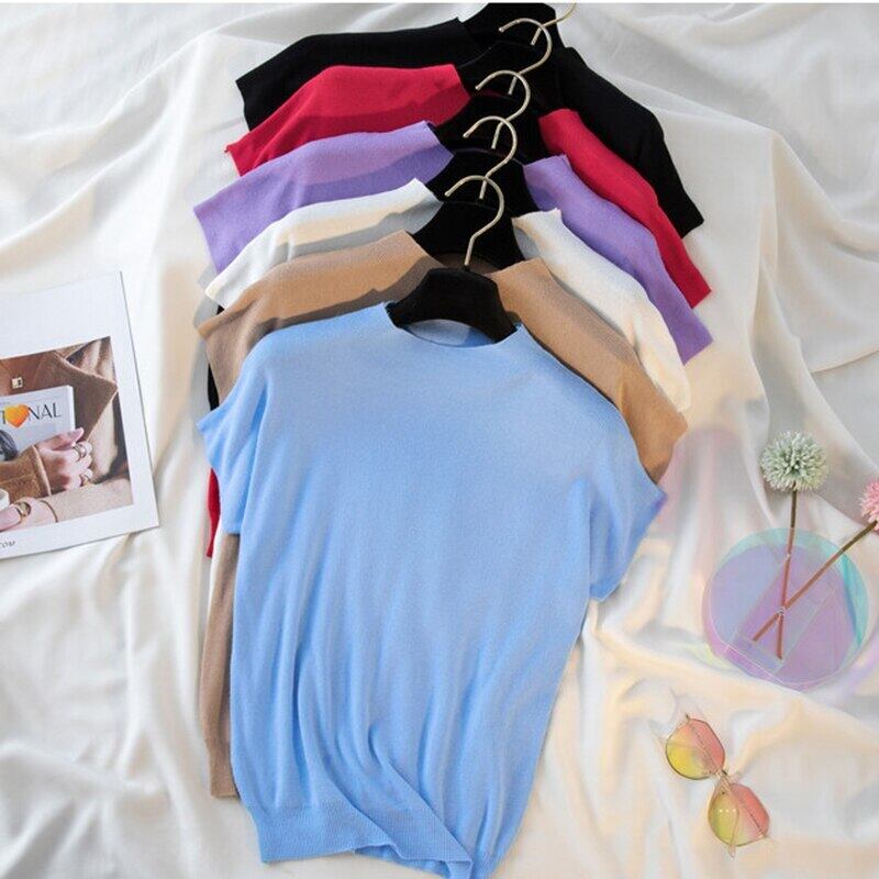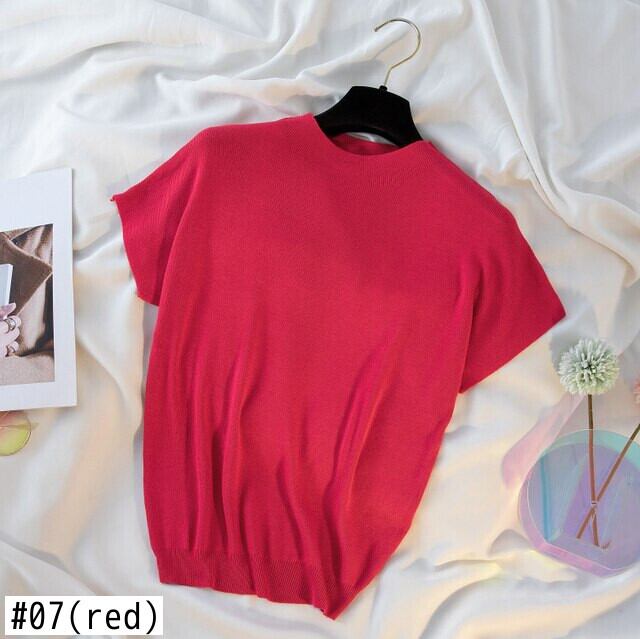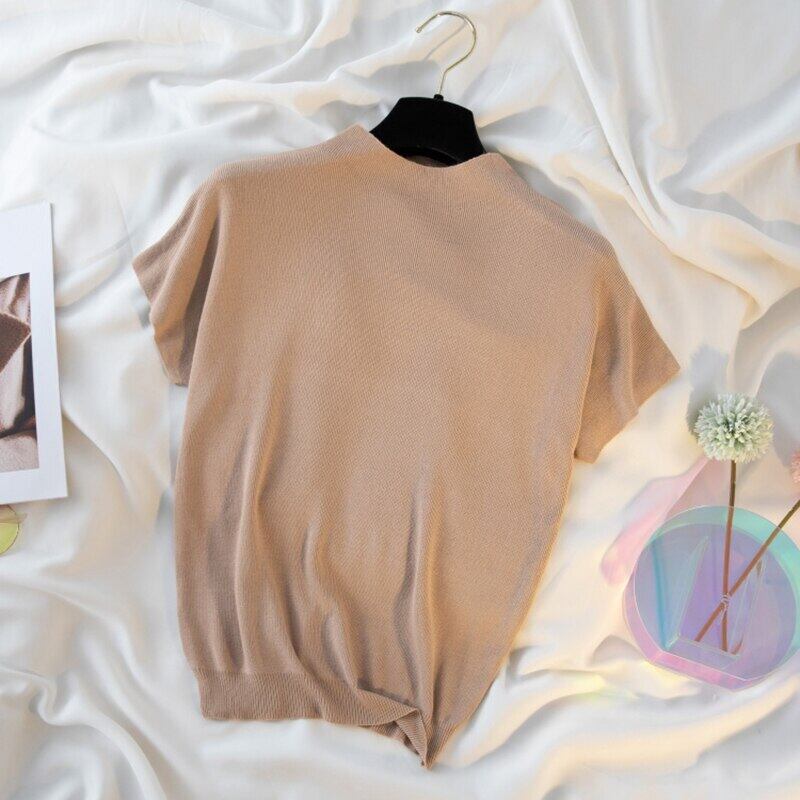 ピンクの基本的な Tシャツ女性 Camisetas 夏の Tシャツ薄いニットトップ半袖 Tシャツ ショート ハーフスリーブ サマー 夏物 Son82080818886