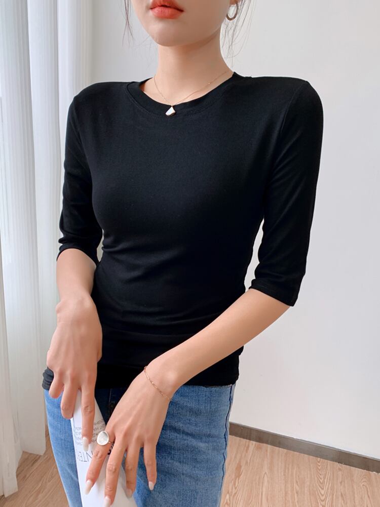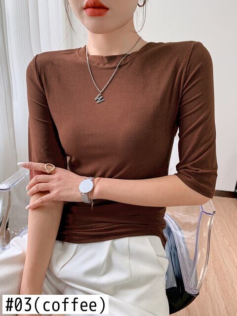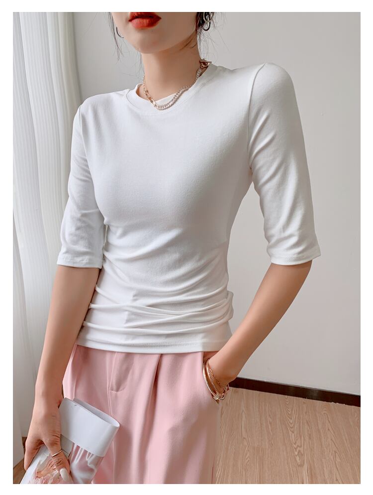 レディーススリークォーターコットンTシャツ女性スリムホワイトTシャツTシャツ春夏トップス スプリング 春物 サマー 夏物 Son62544603737