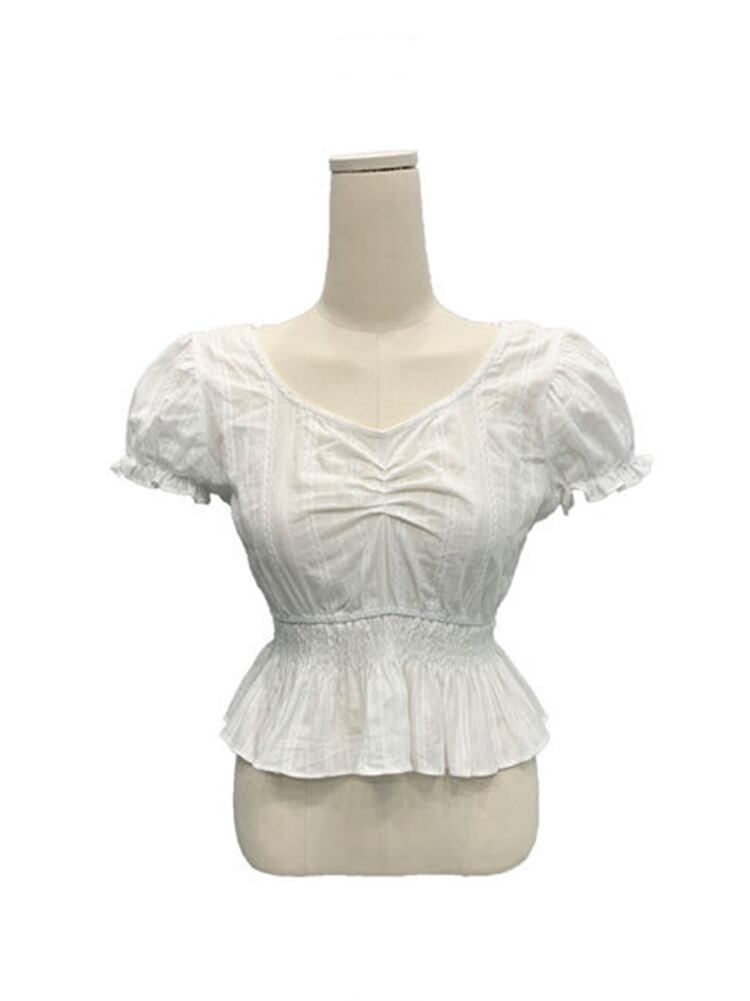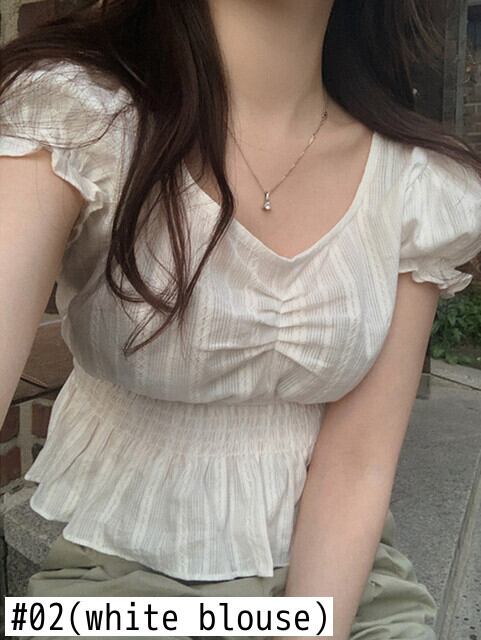 夏の V ネック白ブラウス女性服半袖シャツ女性スリムトップデ Bonitas Y Baratas ショート ホワイト ハーフスリーブ サマー 夏物 Vネック Son61638342345
