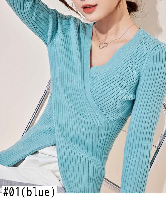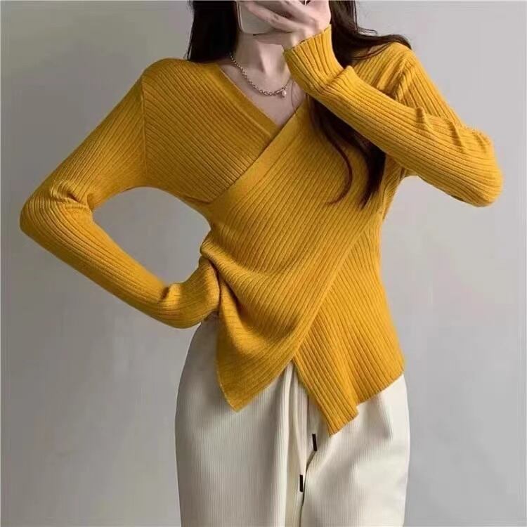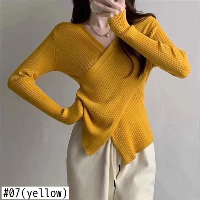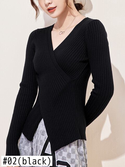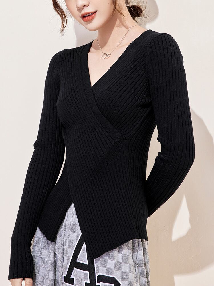 セクシーな V ネックのセーターの女性不規則な長袖トッププルオーバー冬のニットの女性の服ニットセーター ロング ウィンター 冬物 Vネック Son3207316074