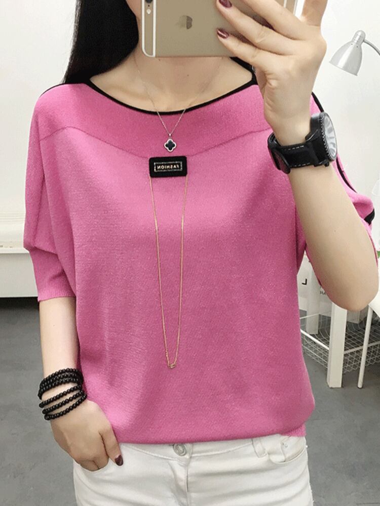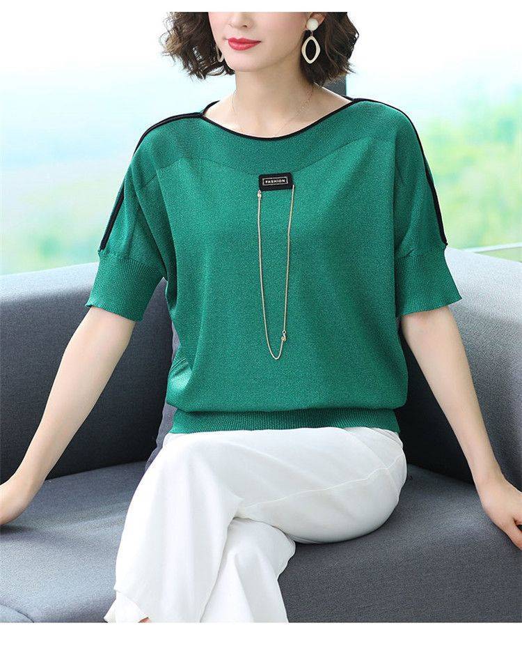 LJSXLS ニット Tシャツレディーストップスルース女性薄型 O ネック Tシャツ夏半袖ソリッド Tシャツ ショート ハーフスリーブ サマー 夏物 Oネック ソリッドカラー Son78285342723
