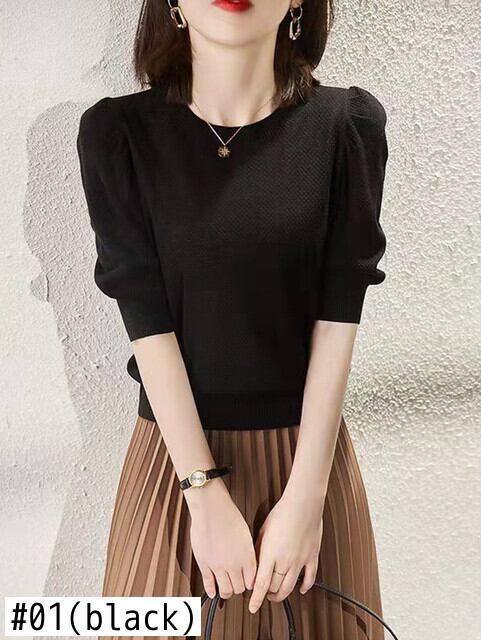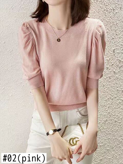 LJSXLS ニット Tシャツ女性パフスリーブピンク Tシャツトップス夏服レディース Tシャツ Camisetas デ サマー 夏物 Son99278433347