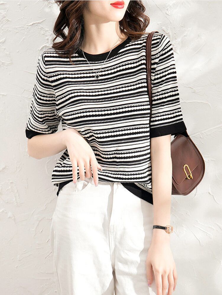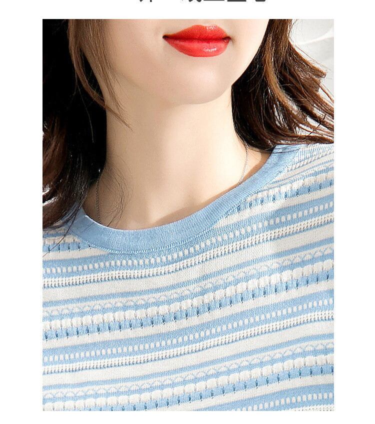 ニット Tシャツ女性ストライプ Tシャツルーズトップス女性服半袖 Tシャツ O ネック Tシャツ夏 ショート ハーフスリーブ サマー 夏物 Oネック Son23444491264