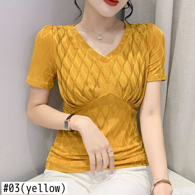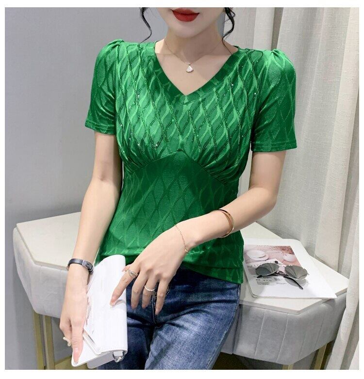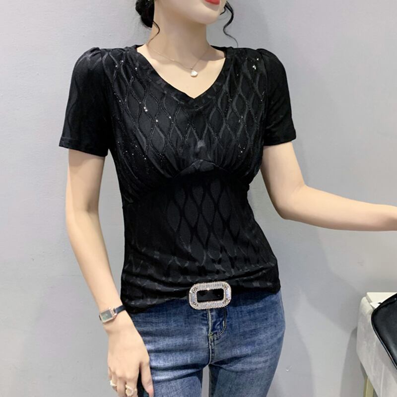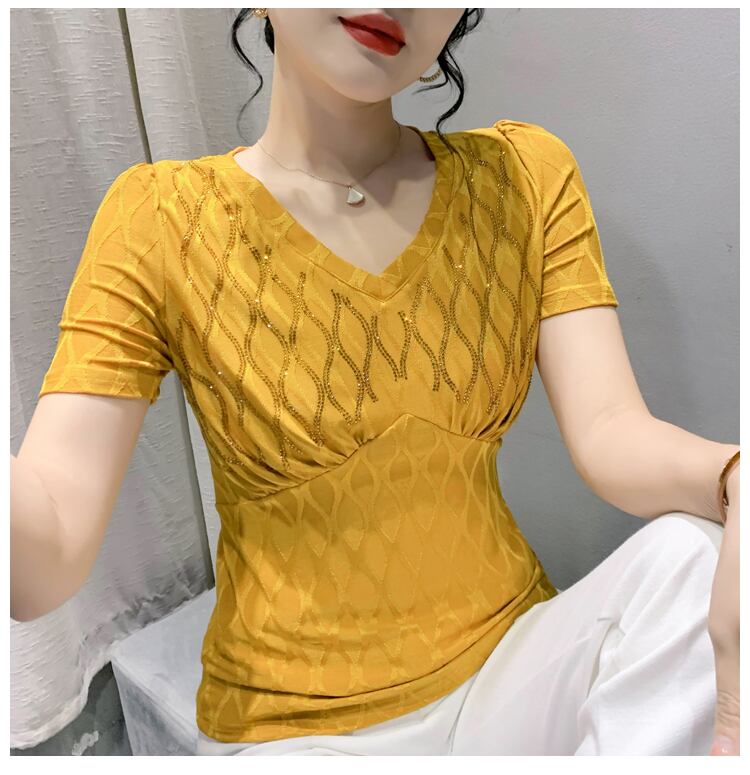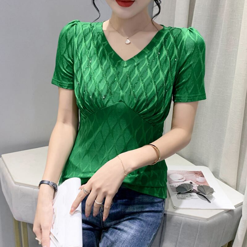Ropa De 夏 V ネックホットダイヤモンドスリムボトム Tシャツ女性半袖 Tシャツ Tシャツ ショート ハーフスリーブ サマー 夏物 Vネック Son12303885684