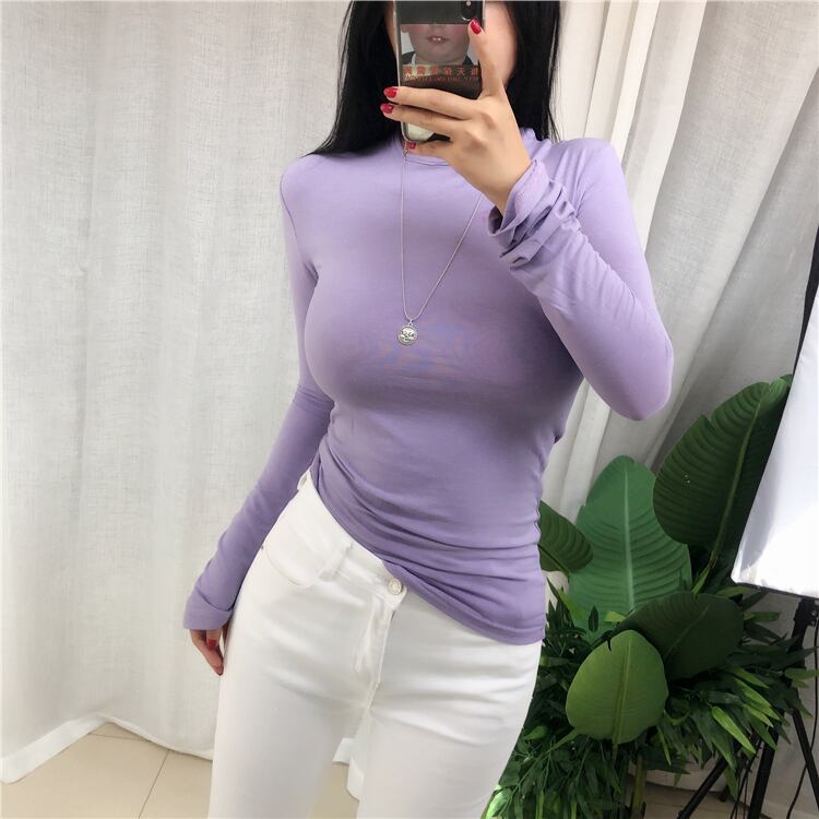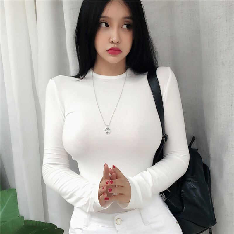 基本的なトップス長袖セクシーなスリム Tシャツ女性の夏のスタイルトップス弾性女性服 Tシャツ ロング エラスティック 伸縮 サマー 夏物 Son274961870