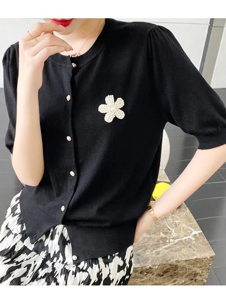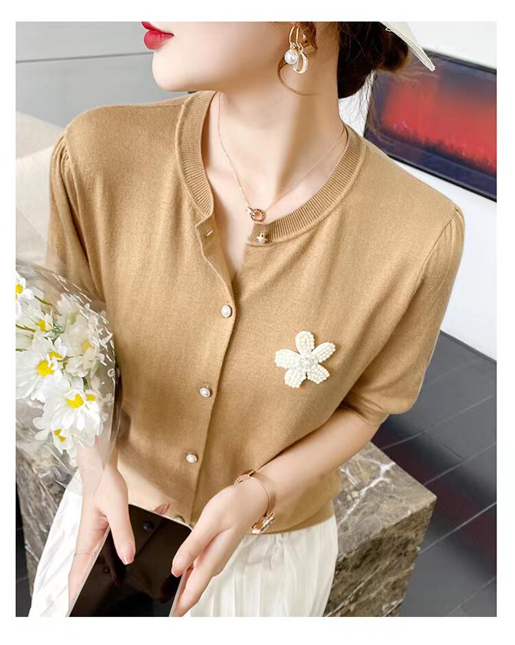 ニットカーディガン Tシャツ女性薄型半袖 Tシャツ夏ルーズトップス Tシャツソフトソリッド O ネックトップ ショート ハーフスリーブ サマー 夏物 Oネック ソリッドカラー Son3573856046