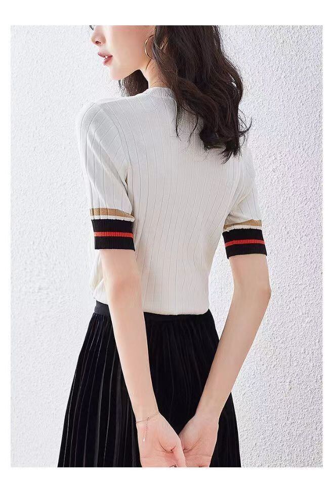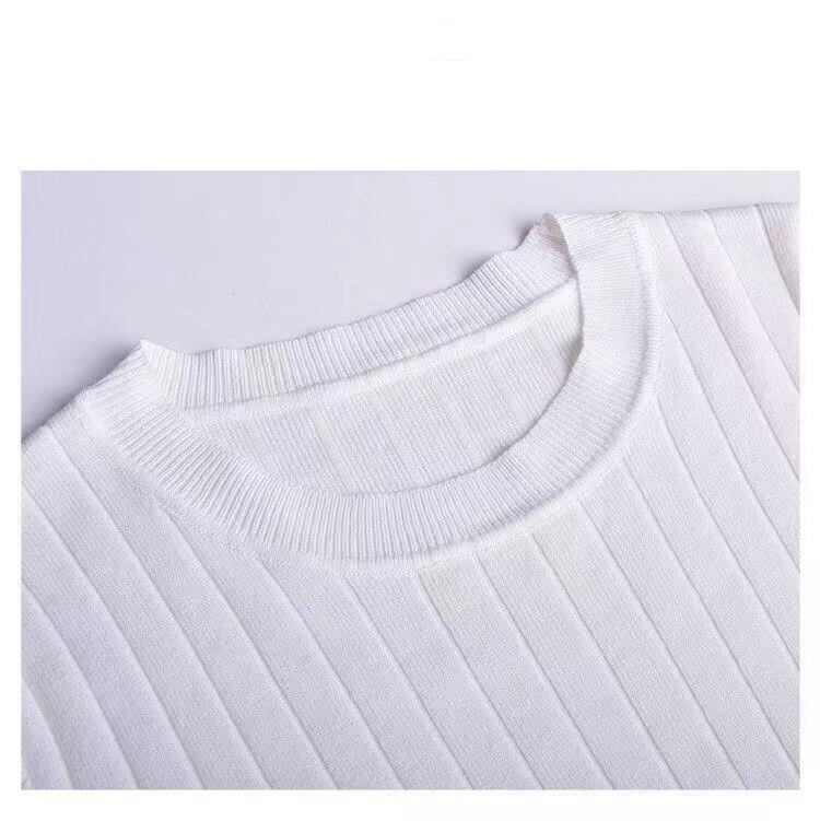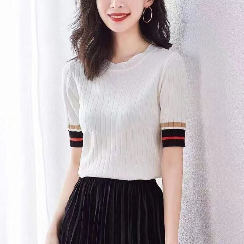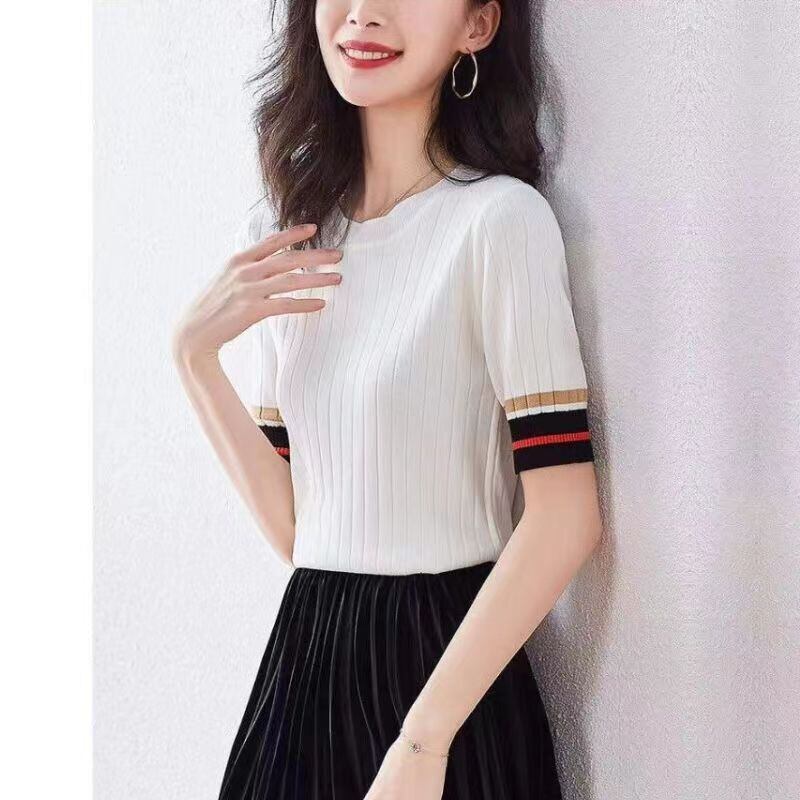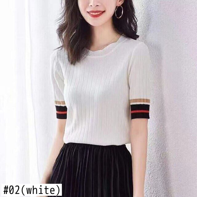 O ネックニットトップス女性白 Tシャツ Tシャツシャツ半袖スリム Tシャツプルオーバー夏レディース ショート ホワイト ハーフスリーブ サマー 夏物 Son51364169000