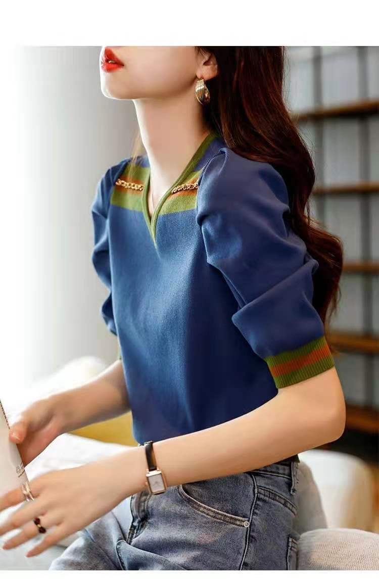 Tシャツ夏コントラストカラー Camisetas 薄型 Tシャツ女性トップ半袖ニット Tシャツ女性服 ショート ハーフスリーブ サマー 夏物 Son37273999522
