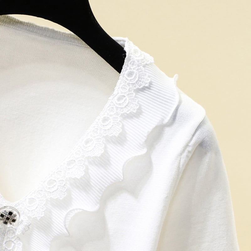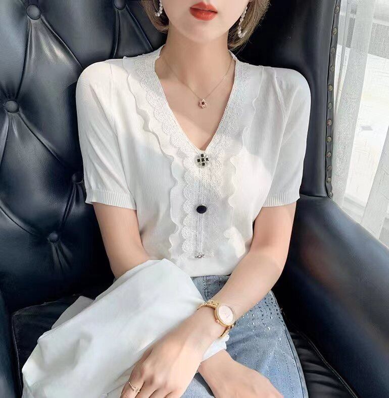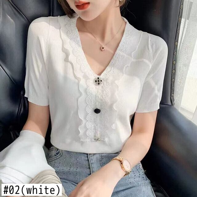 夏半袖 Camiseta Tシャツ女性 V ネック女性 Tシャツニット Haut Tシャツ白黒 ショート ホワイト ブラック ハーフスリーブ サマー 夏物 Vネック Son97102350439