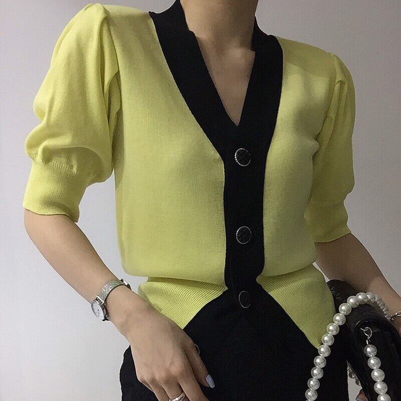 服ニットカーディガン Tシャツ薄い半袖 Tシャツ夏 V ネックトップスピンク Tシャツ ショート ハーフスリーブ サマー 夏物 Vネック