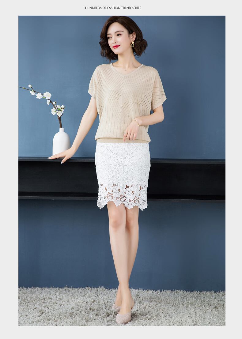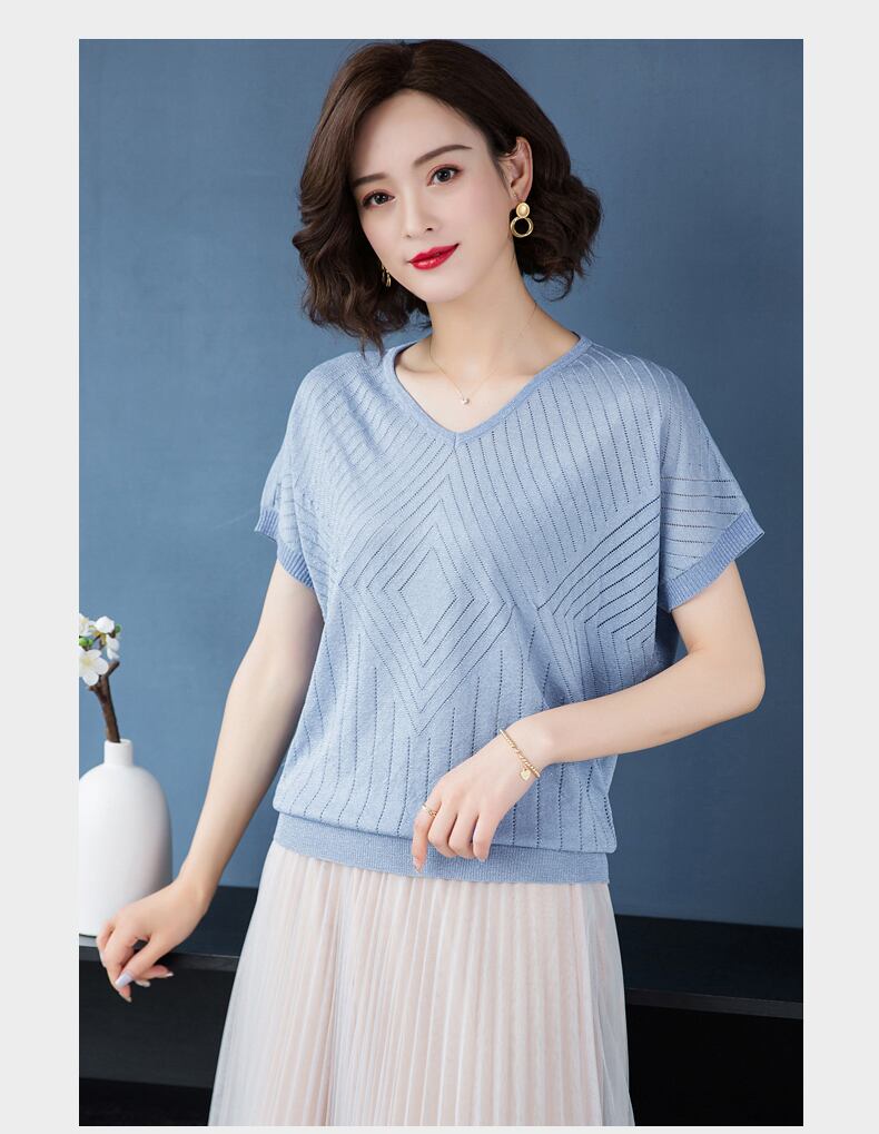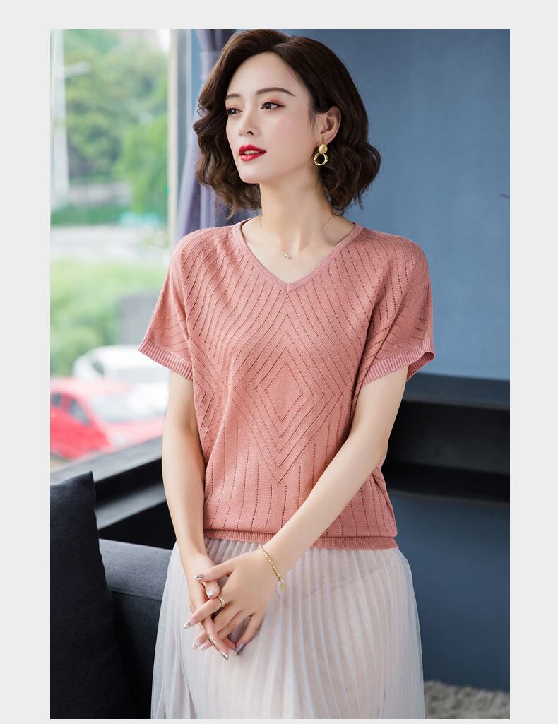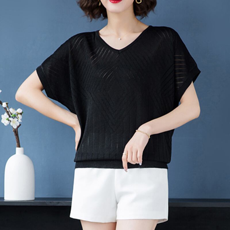 Tシャツ V ネック半袖ニット Tシャツの夏の薄い中空アウトトップス Tシャツ Ropa デ ショート ハーフスリーブ サマー 夏物 Vネック