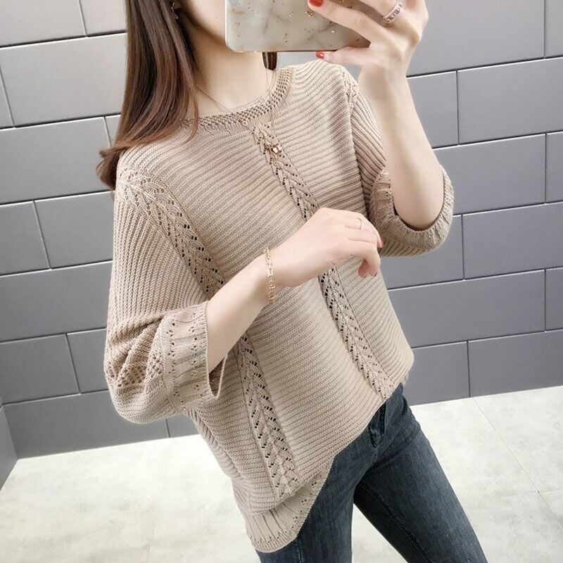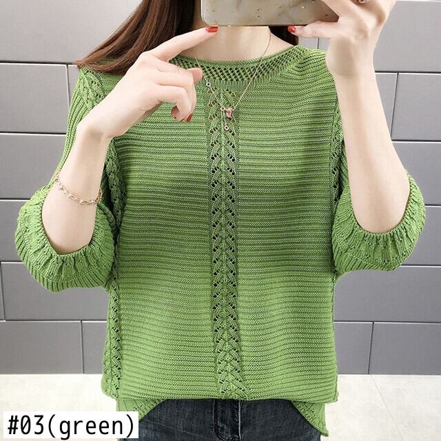 夏中空アウトトップス O ネック七分袖ニット Tシャツルーズ Tシャツ薄型 Tシャツ サマー 夏物 Oネック