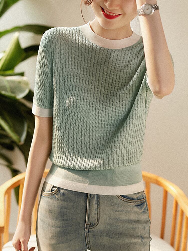 半袖 Tシャツ O ネックコントラストカラーソフトトッププルオーバー Tシャツニットルーズ服 Tシャツ夏 Tシャツ ショート ハーフスリーブ サマー 夏物 Oネック
