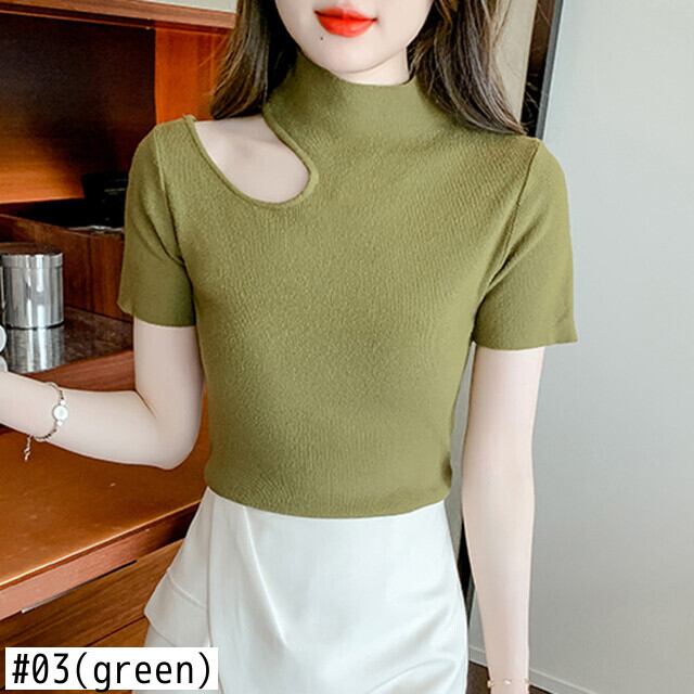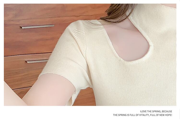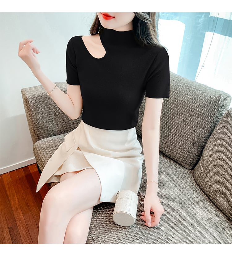 セクシー中空アウトスリムニットトップス半袖 Tシャツタートルネック Tシャツ Tシャツ夏レディース ショート ハーフスリーブ サマー 夏物