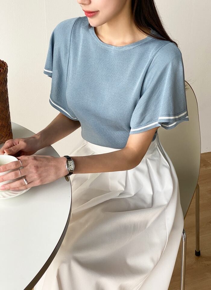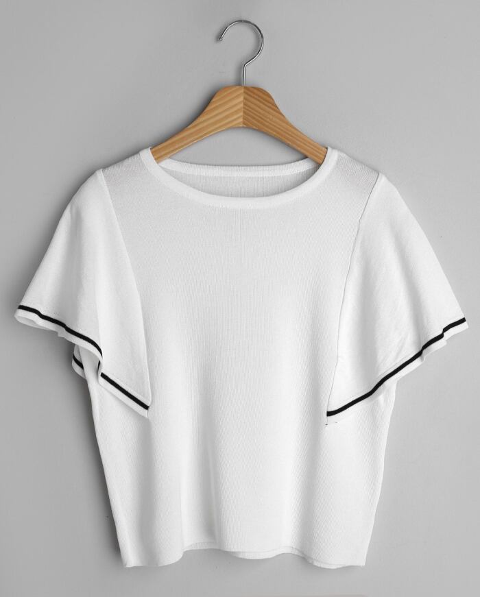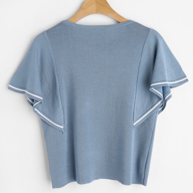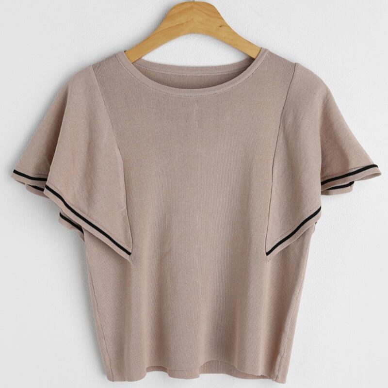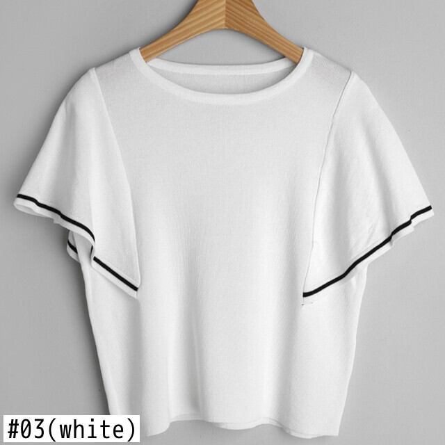 Camisetas 夏半袖 Tシャツフリル O ネックプルオーバーアイス Tシャツ Tシャツニットトップ ショート ハーフスリーブ サマー 夏物 Oネック シルク