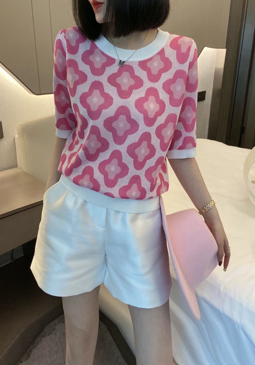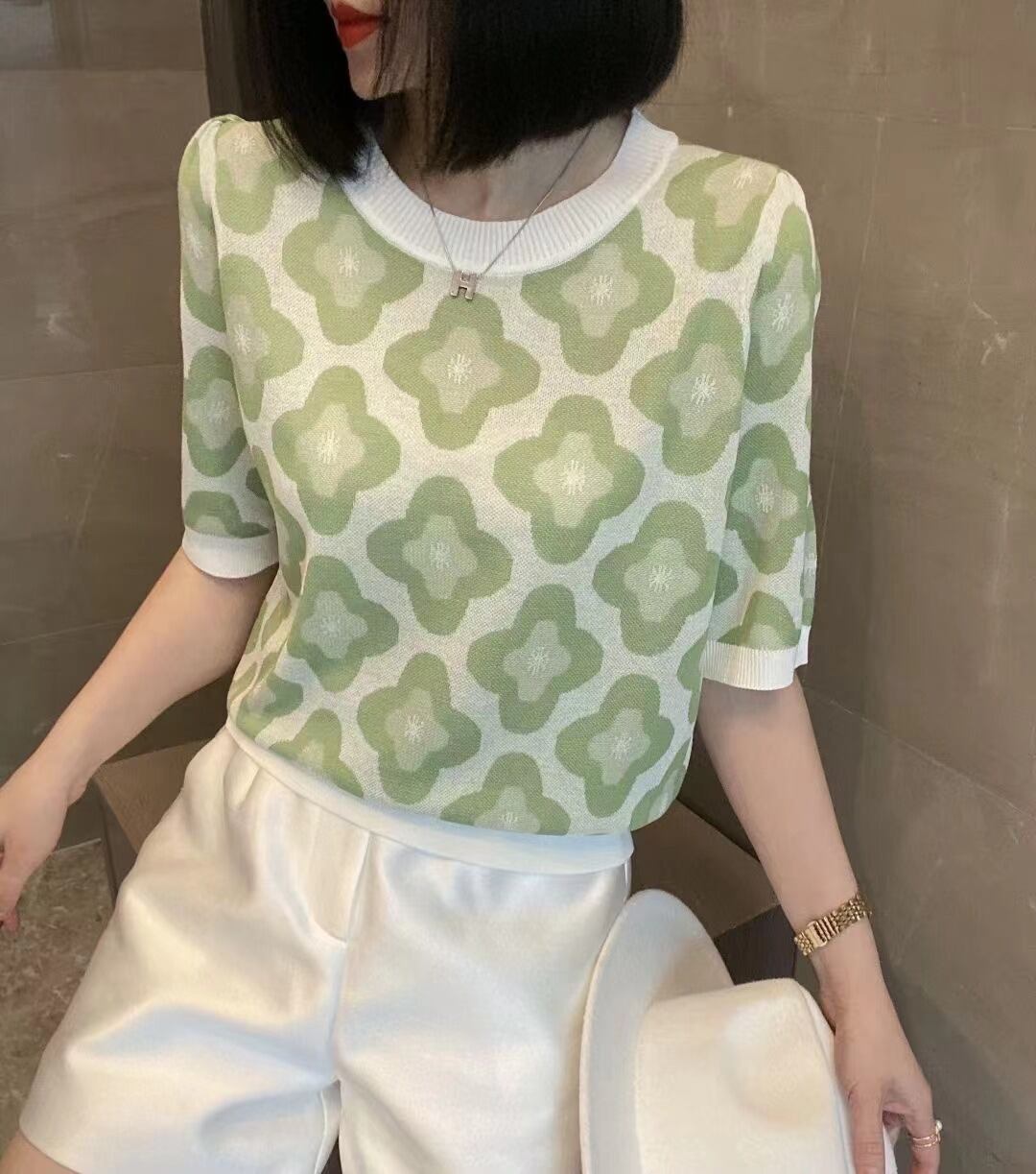 Camisetas De 夏ジャカード Tシャツ O ネック半袖 Tシャツ Tシャツスタイルニットトップス ショート ハーフスリーブ サマー 夏物 Oネック
