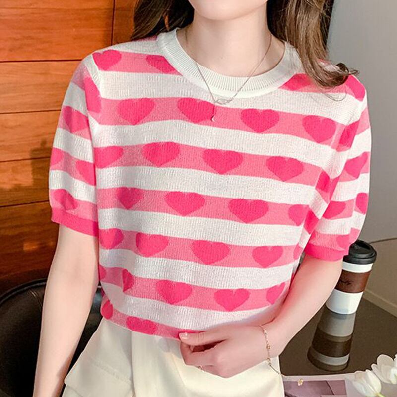 夏 Tシャツ薄型 Tシャツジャカード Tシャツスタイルニットトップス O ネック半袖 Tシャツ ショート ハーフスリーブ サマー 夏物 Oネック